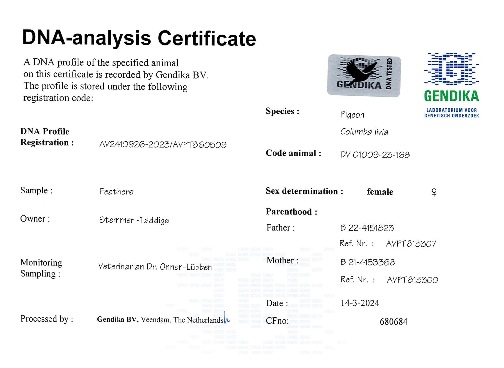 Direct son out champion birds “Prince Porsche” x “Luna”