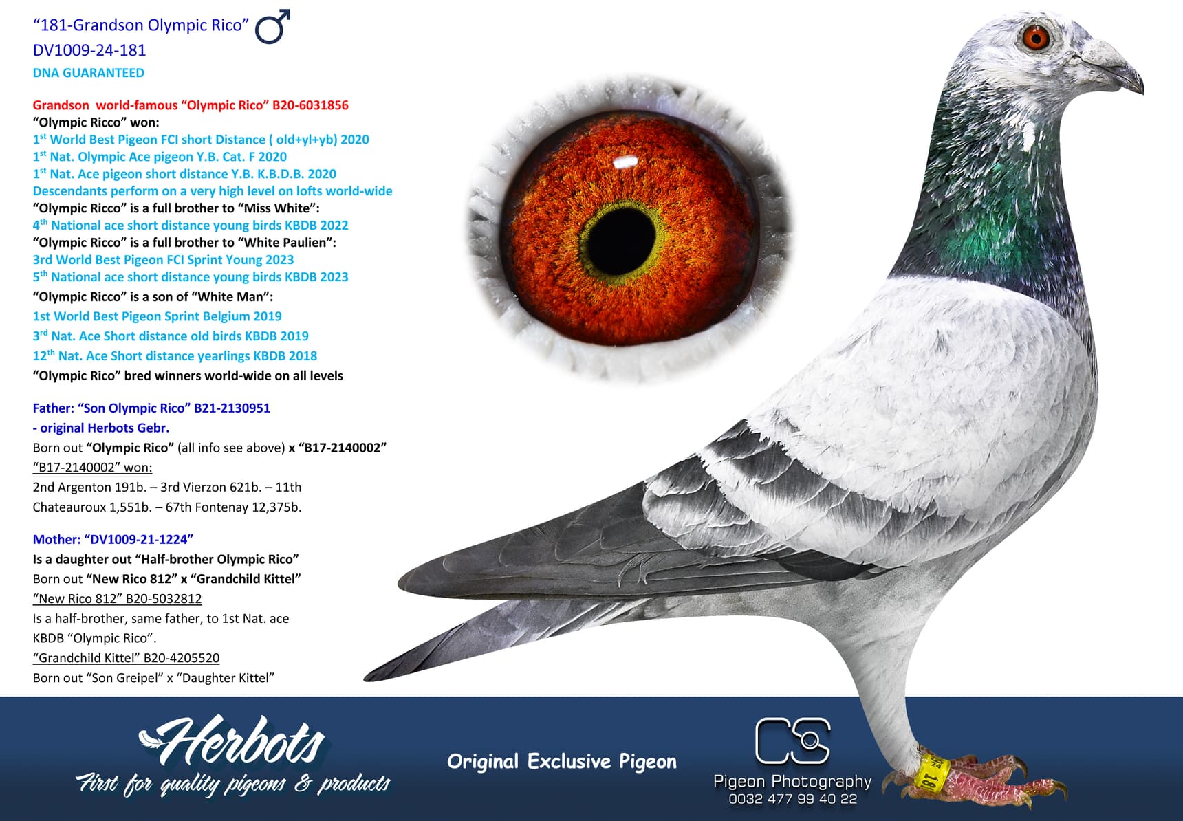 Together they only went for the very best and we are talking about direct children of "Olympic Rico" (Olympiad pigeon and 1st Nat. ace pigeon KBDB speed) - "Grizzle Best Kittel" (Dehon-Dumonseau) - "Blue Best Kittel" (1st Nat. ace KBDB '21 short distance - Dehon-Dumonseau) - "Best Kittel 2" (1st Nat. ace short distance 2020 - Dehon-Dumonseau) - "Speedy Grizzle" (1st Nat. ace Natour WHZB/TBOTB ) - "White Man" (Vervoort) - "Prince Porsche" and "Porsche 2" ( 5th Nat. ace KBDb Fond yearbirds - PEC)