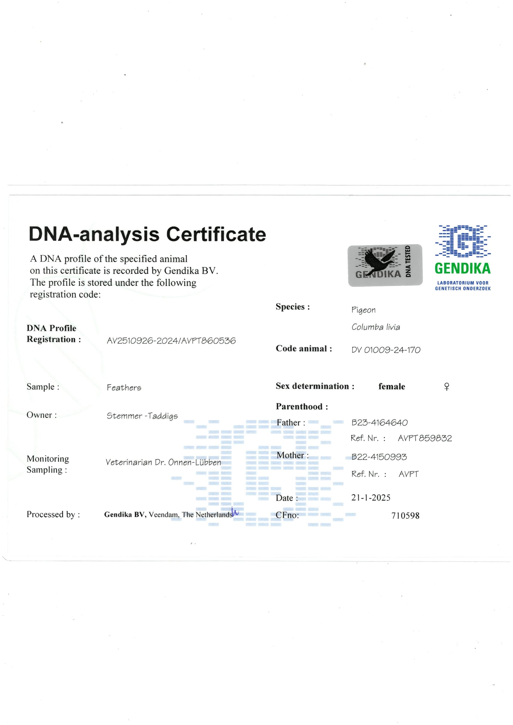2nd Best yearbird of Belgium on 4 nat. Fond races 2022