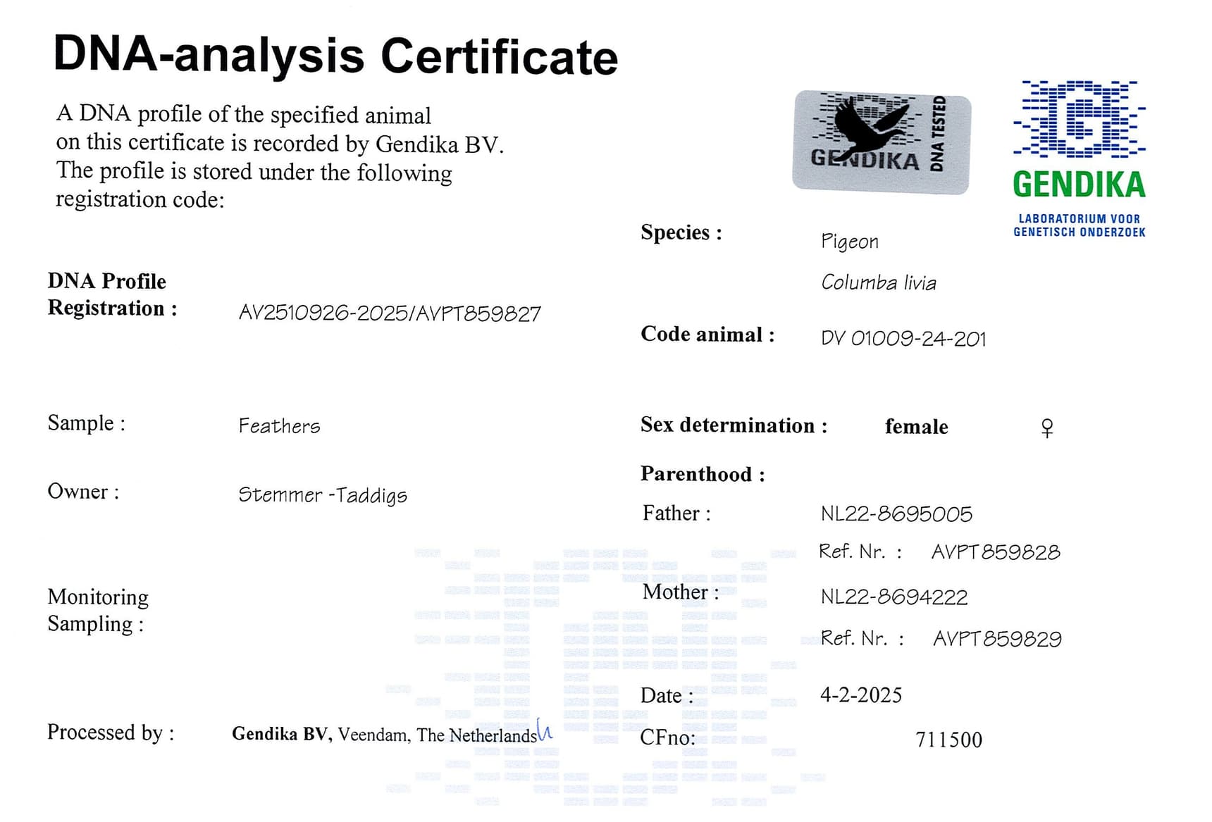 Son out “Crack 19” (1st Reg. Ace bird ½ Fond) x “Goed Grijs”.