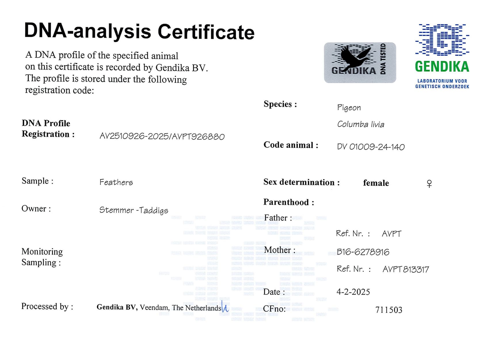 Is a granddaughter “Gilbert” (4th Nat. ace KBDB) and “De Jan” x “Daughter Euro”