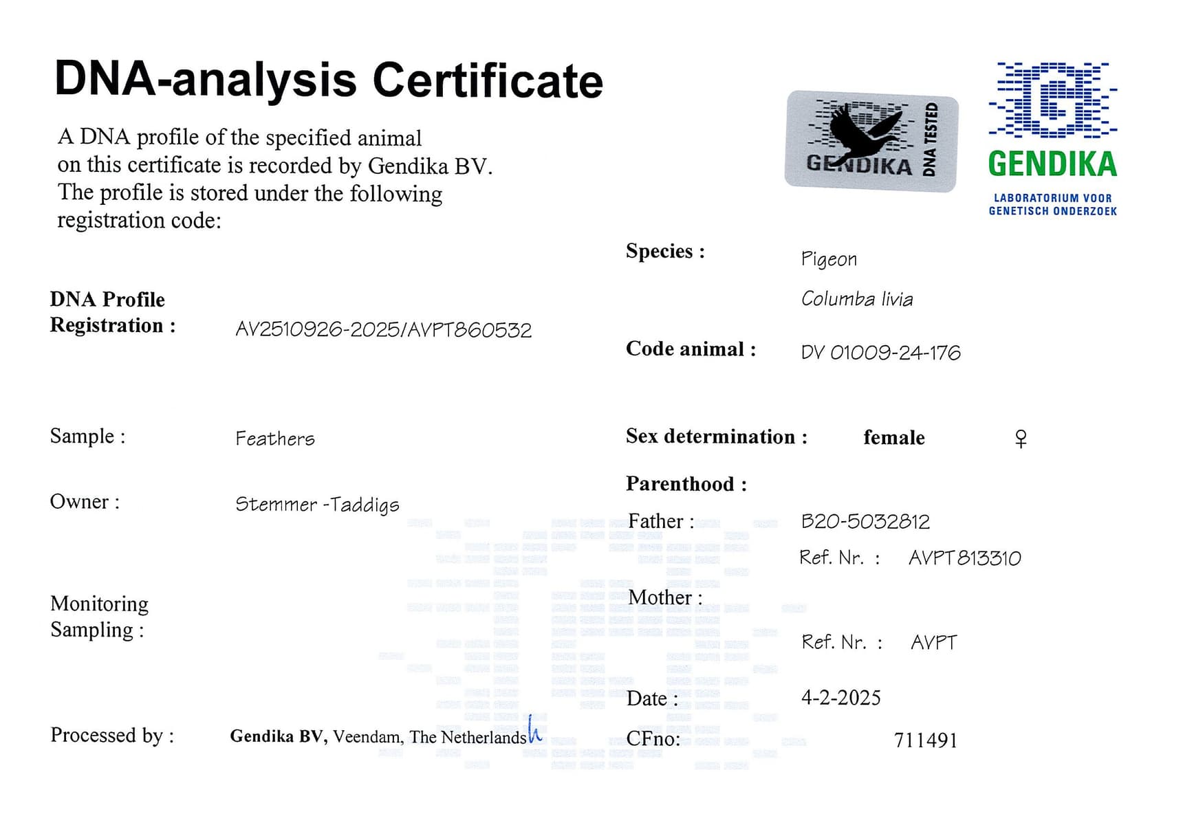 Direct son “White Man” x “Zuske 23” (full sister to “Olympic Wout” – Olympiad bird Polen Cat. F 2019)