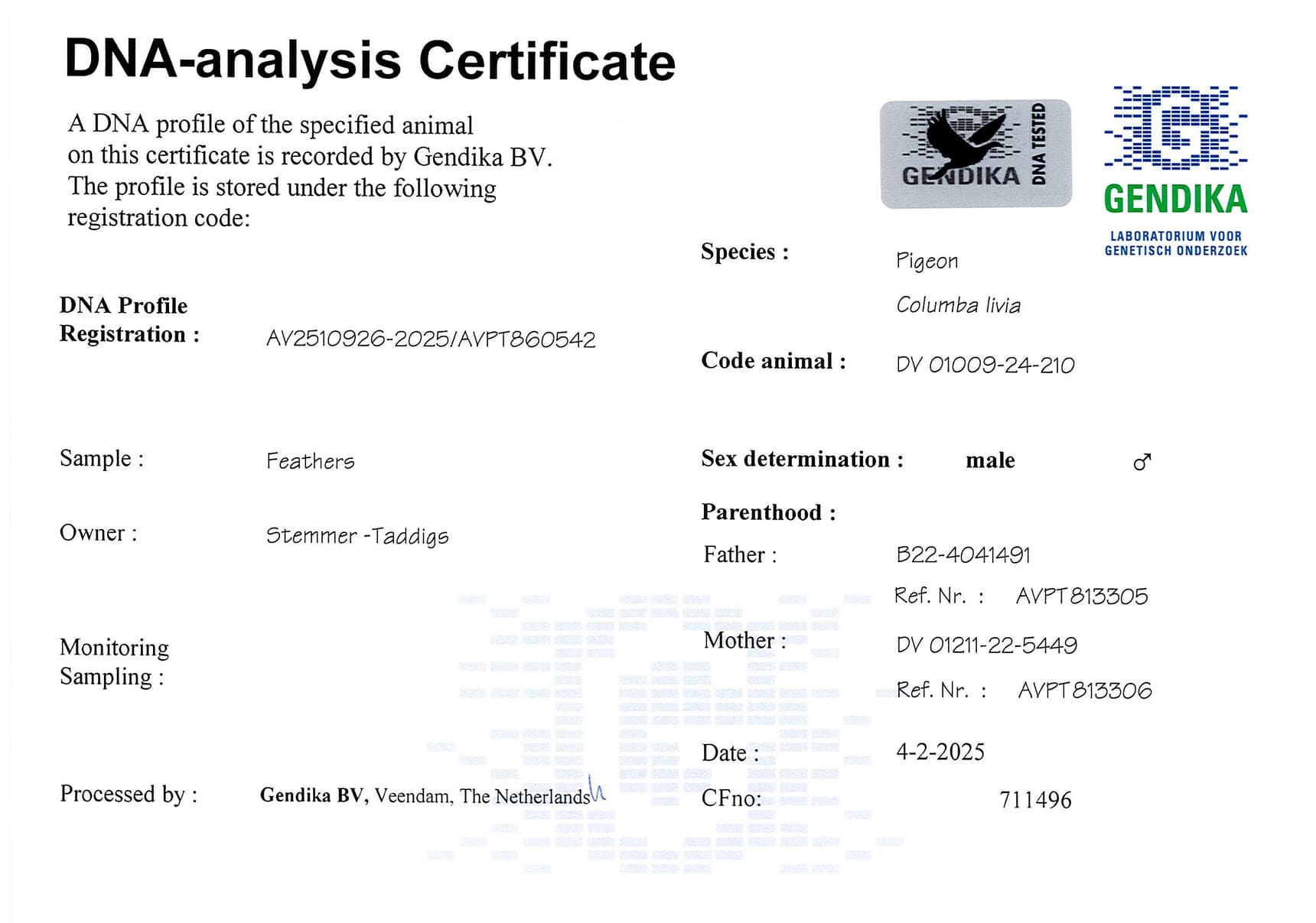 Born out “Best Kittel” (1st Nat. ace KBDB short distance – bred in2 generations 75 x 1st prize winners world-wide) x “Shakira” (won on 5 races 5 x 1/100)