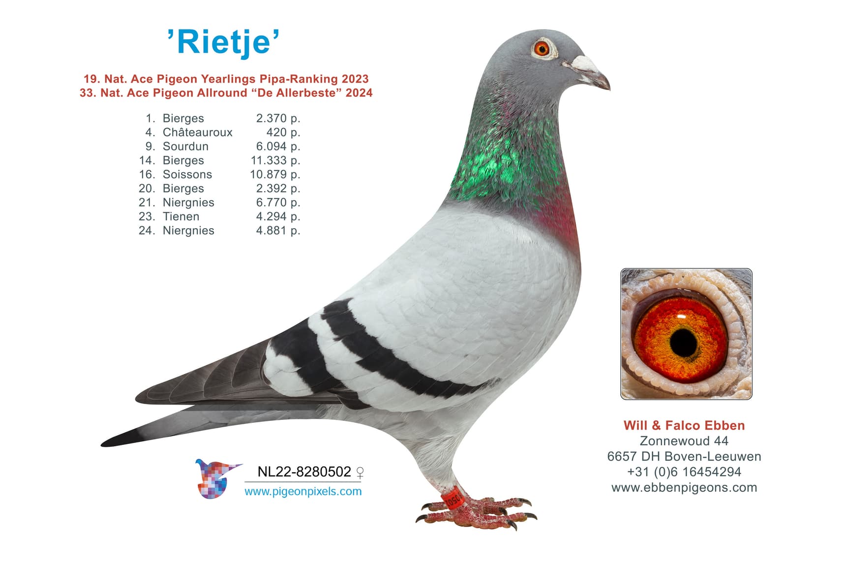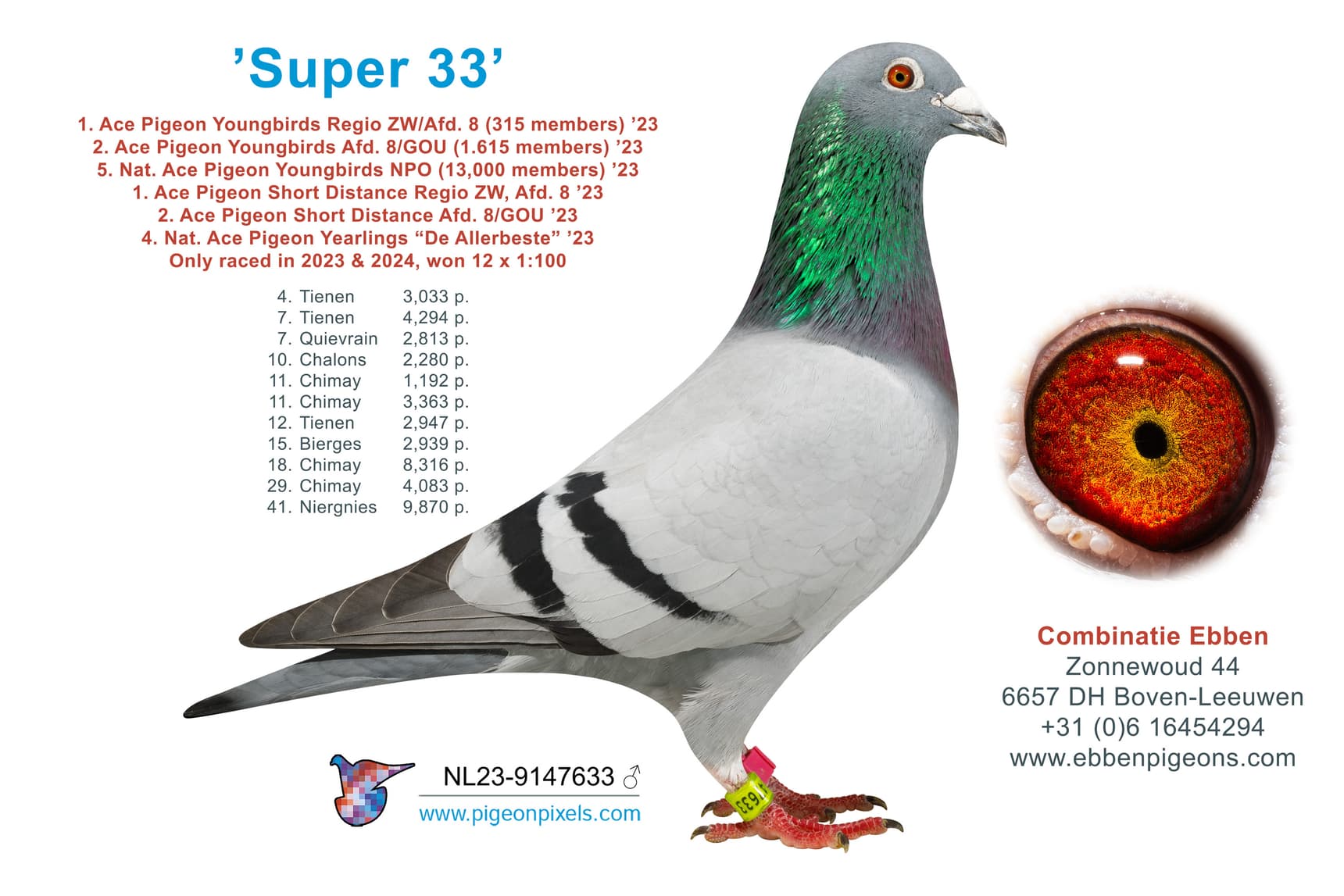 Won as young- and yearbird – 6 x 1st – 12 x 1/100