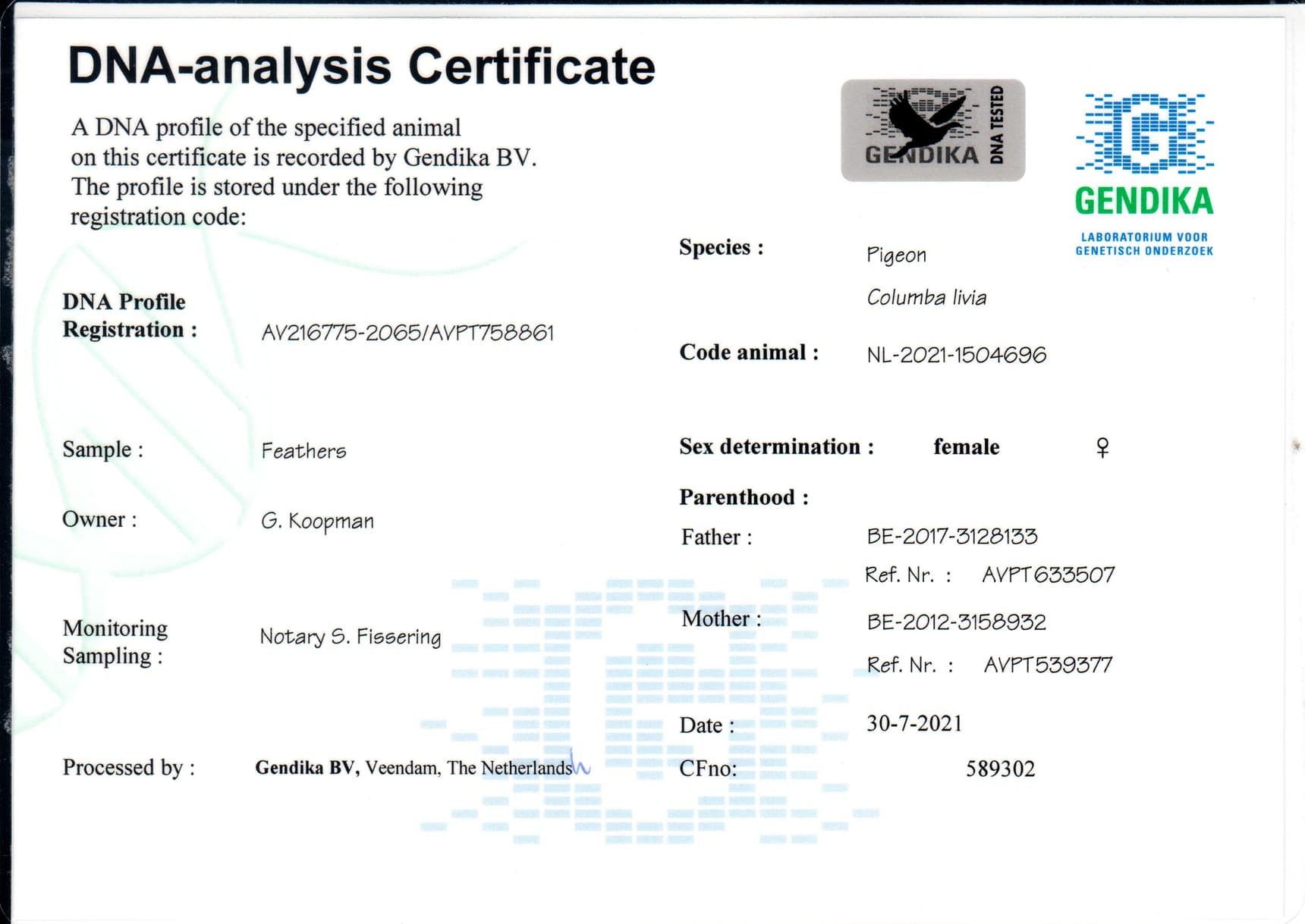 Born out “Blauw Witslag” (uncle to 1st Nat.