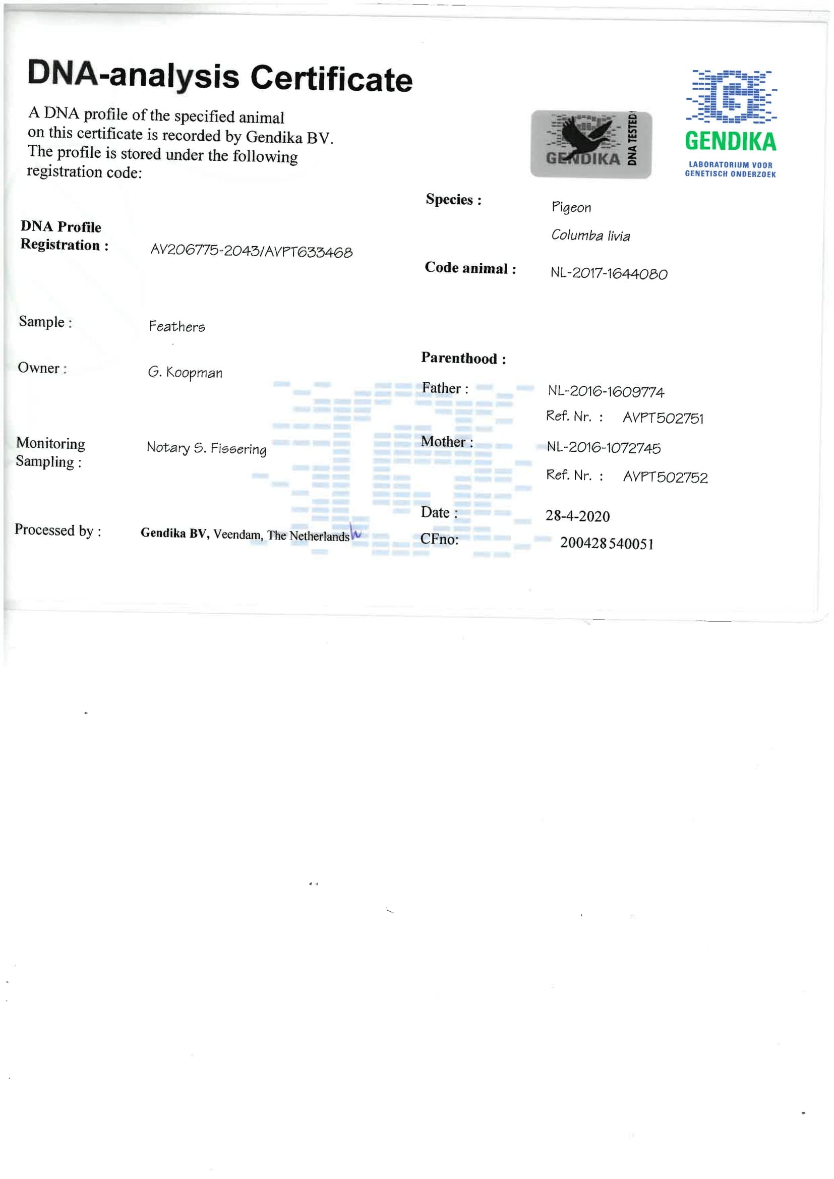 Born out “Red Bullens” (1st NPO Bergerac 4,288b. – 2nd NPO Bordeaux 5,038b. – 2nd NPO Bergerac 4,651b.) x “Peiren 671” (original Peiren Noel)
