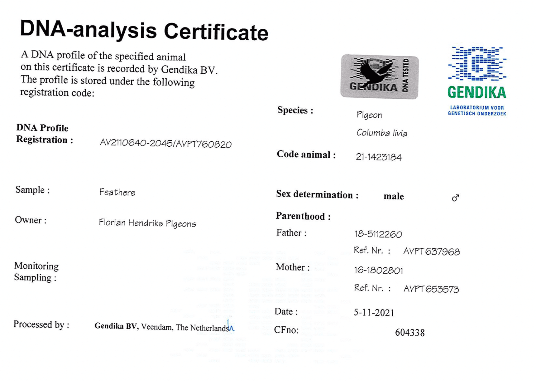 Direct daughter of champion bird “King Kong” (won: 2prov.