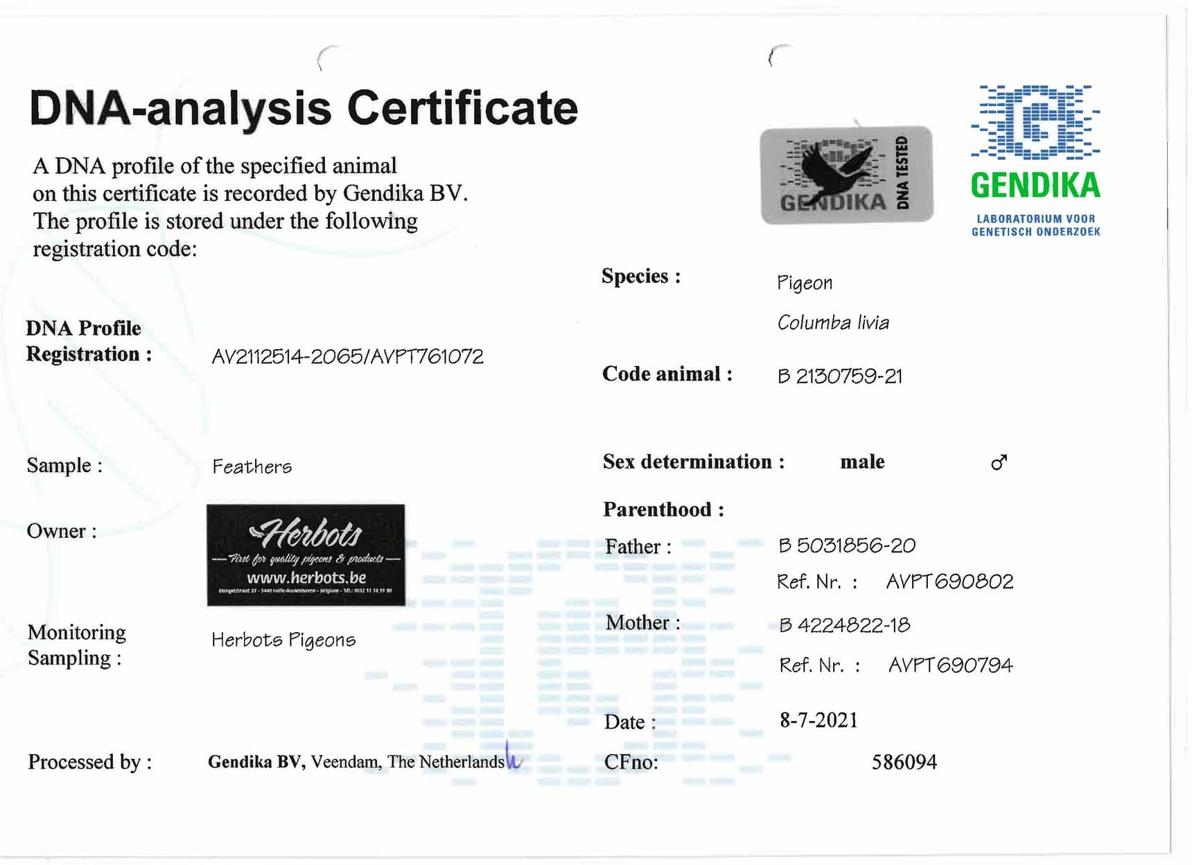1 Nat. Olympic Ace pigeon Y.B. Cat. F 2020