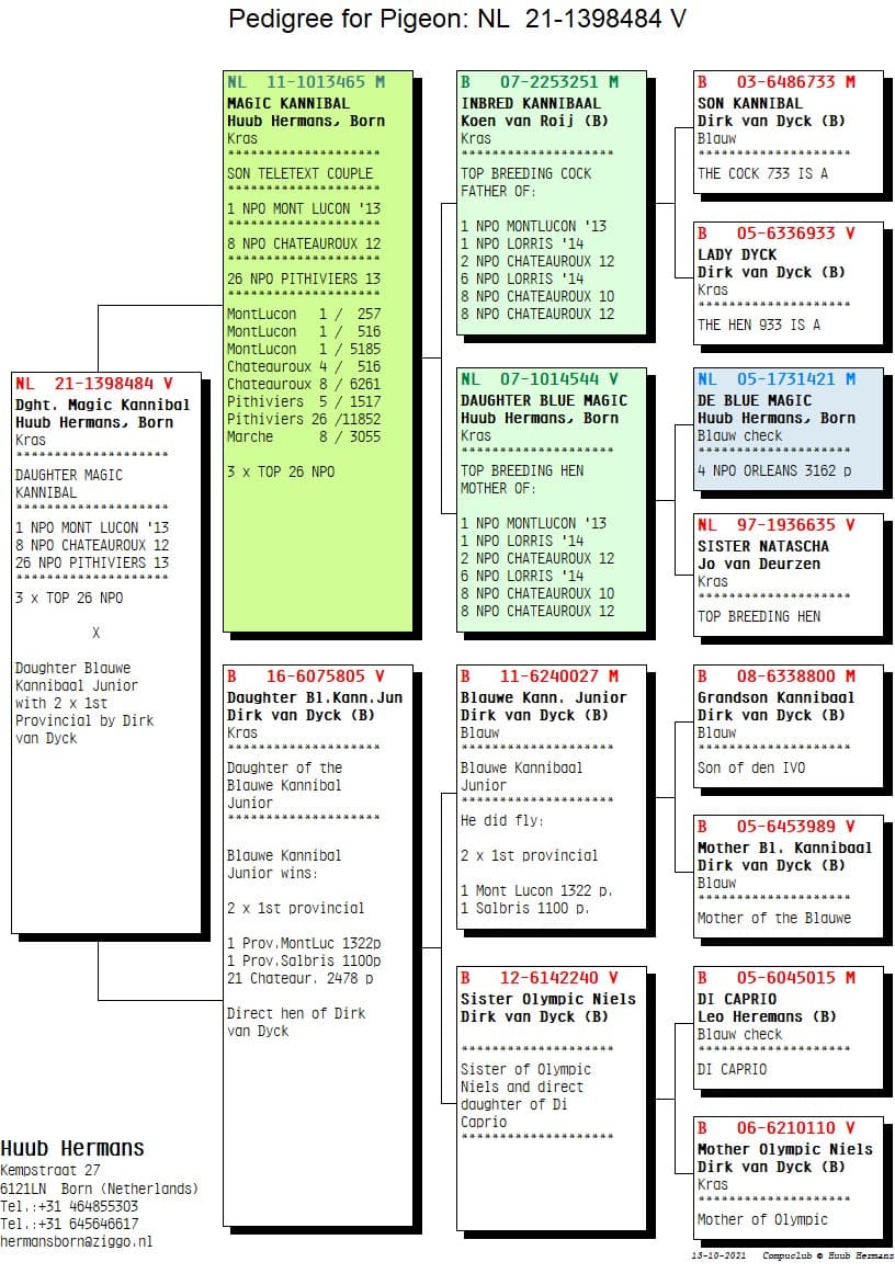 provincial) x “Sister Olympic Niels” (full sister Olympiad bird