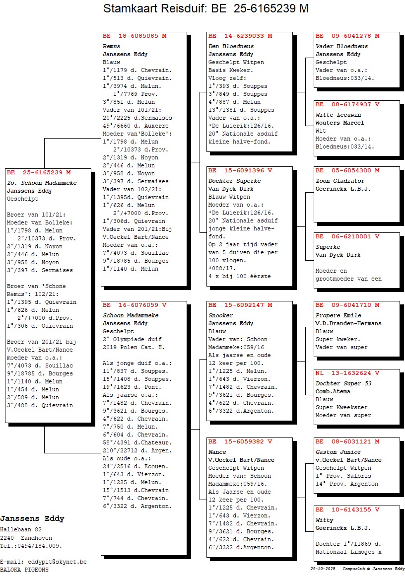 Co-winner 2nd Nat. Championship KBDBB ½ Fond youngbirds