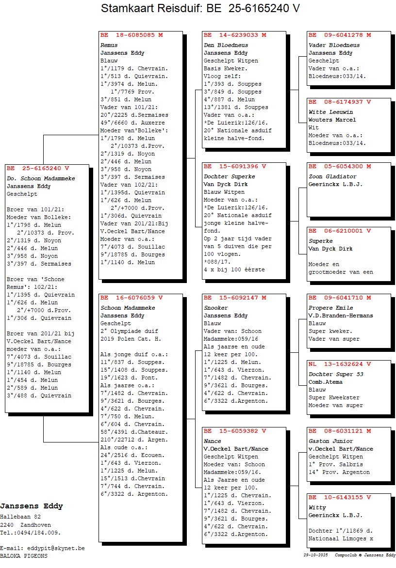 Co-winner 2nd Nat. Championship KBDBB ½ Fond youngbirds