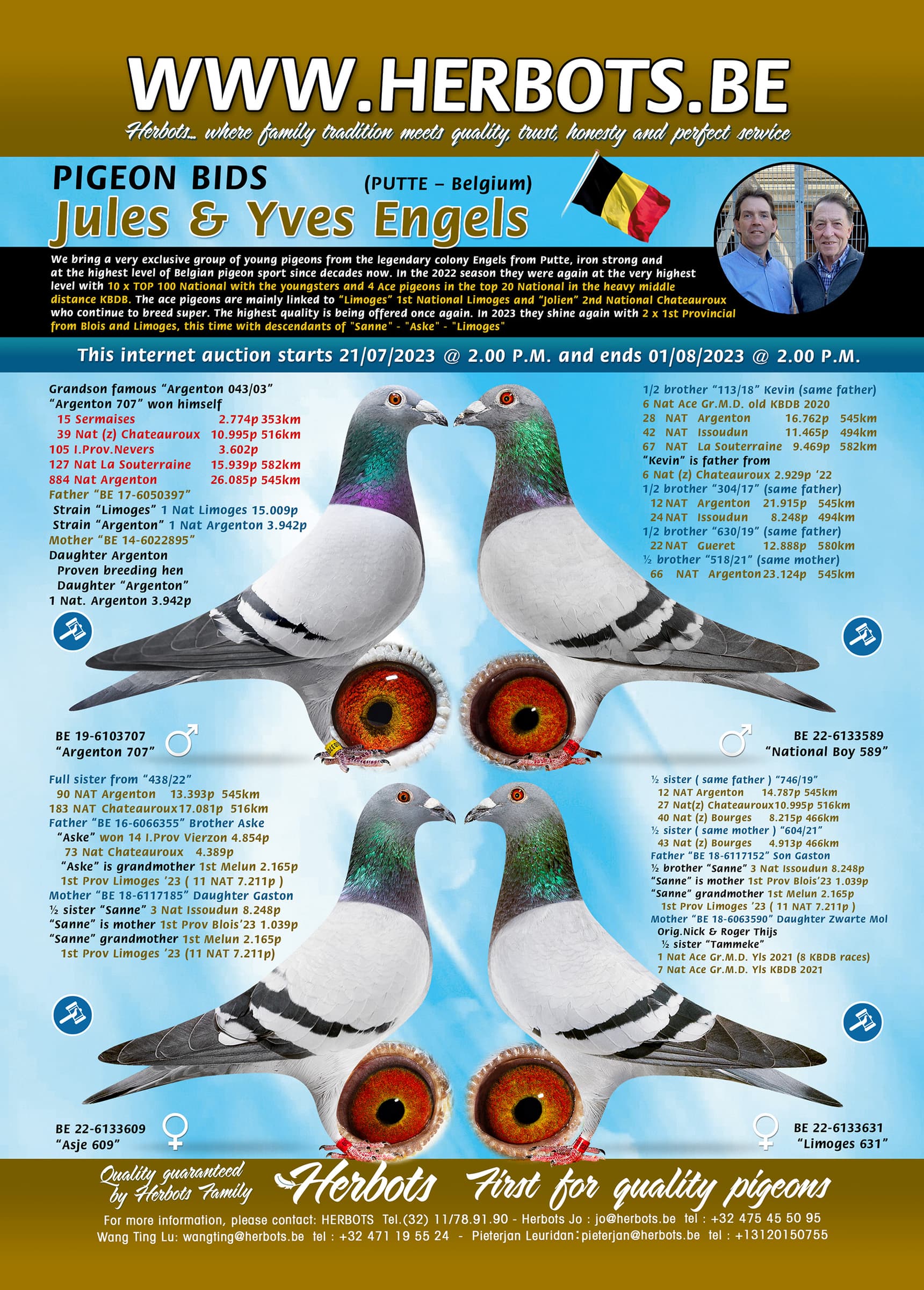 We brengen een zeer exclusieve groep jonge duiven uit de legendarische kolonie Engels uit Putte, ijzersterk en al tientallen jaren op het hoogste niveau van de Belgische duivensport.