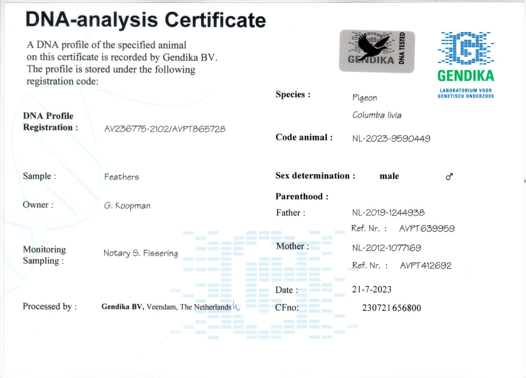 Direct daughter “Mister B.P.” (1st Nat. ace NPO middle distance 2011 – 1st Nanteuil 11,807b. - 1st Peronne 2,383b.) x “Cantharel” (Direct daughter “Harry” – Jan Hooymans)