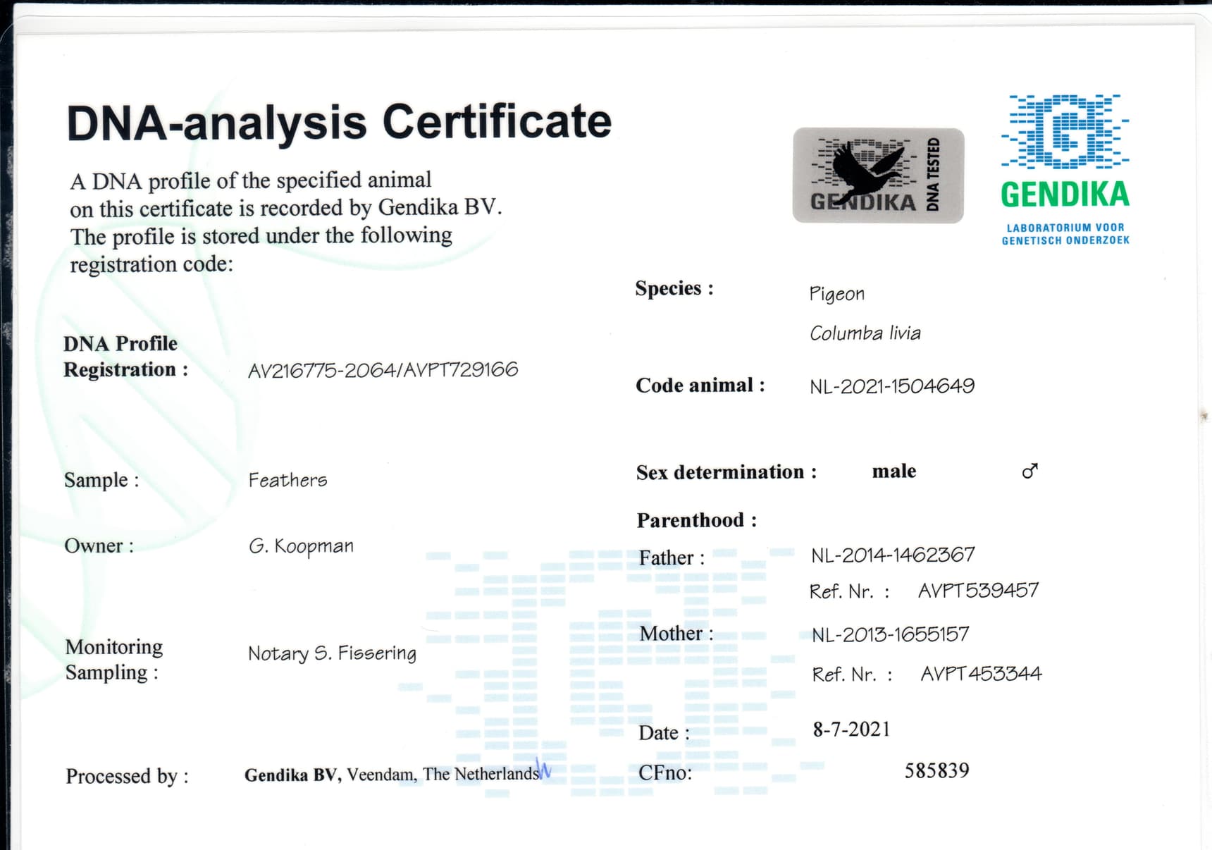 Born out “Bjarne” (base breeding cock - original De Rauw-Sablon. Son out “Den Dromer”) x “Martine”