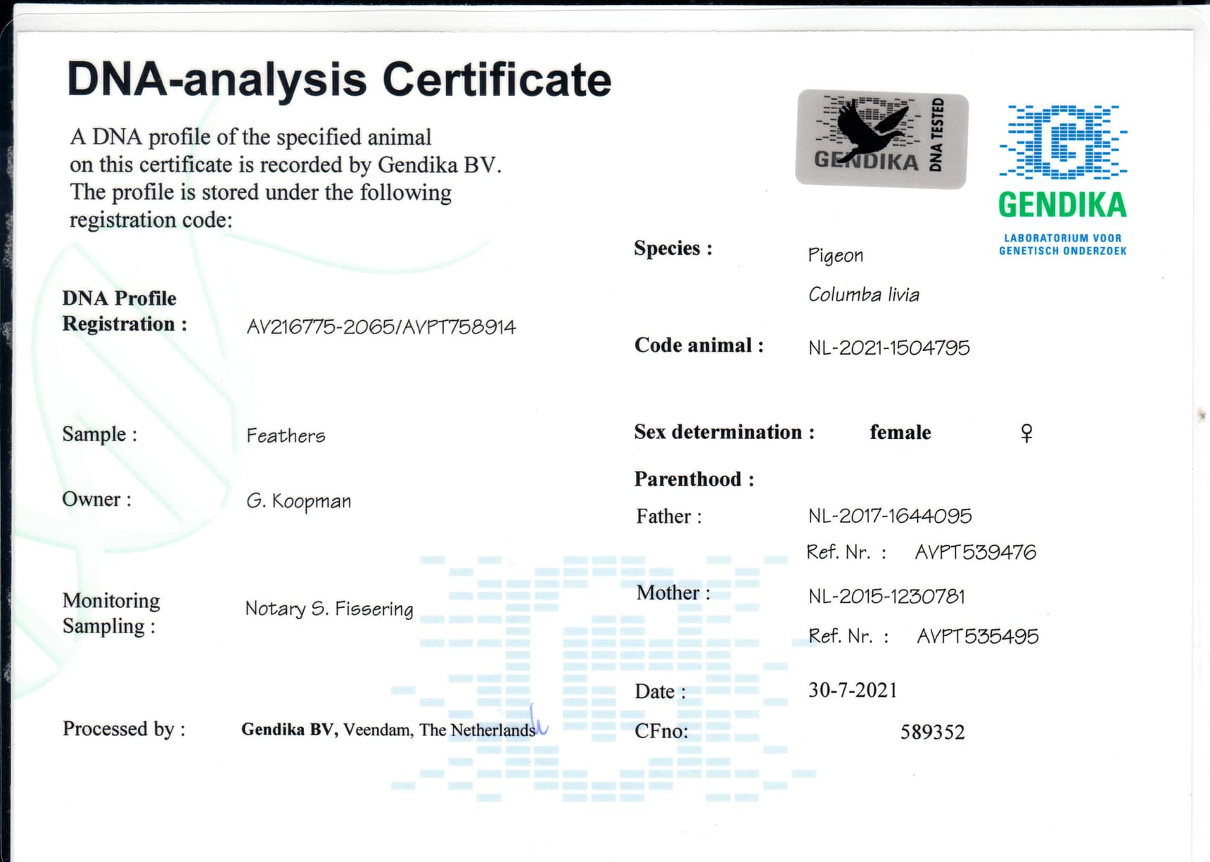 Father: “Vanir” NL17-1644095