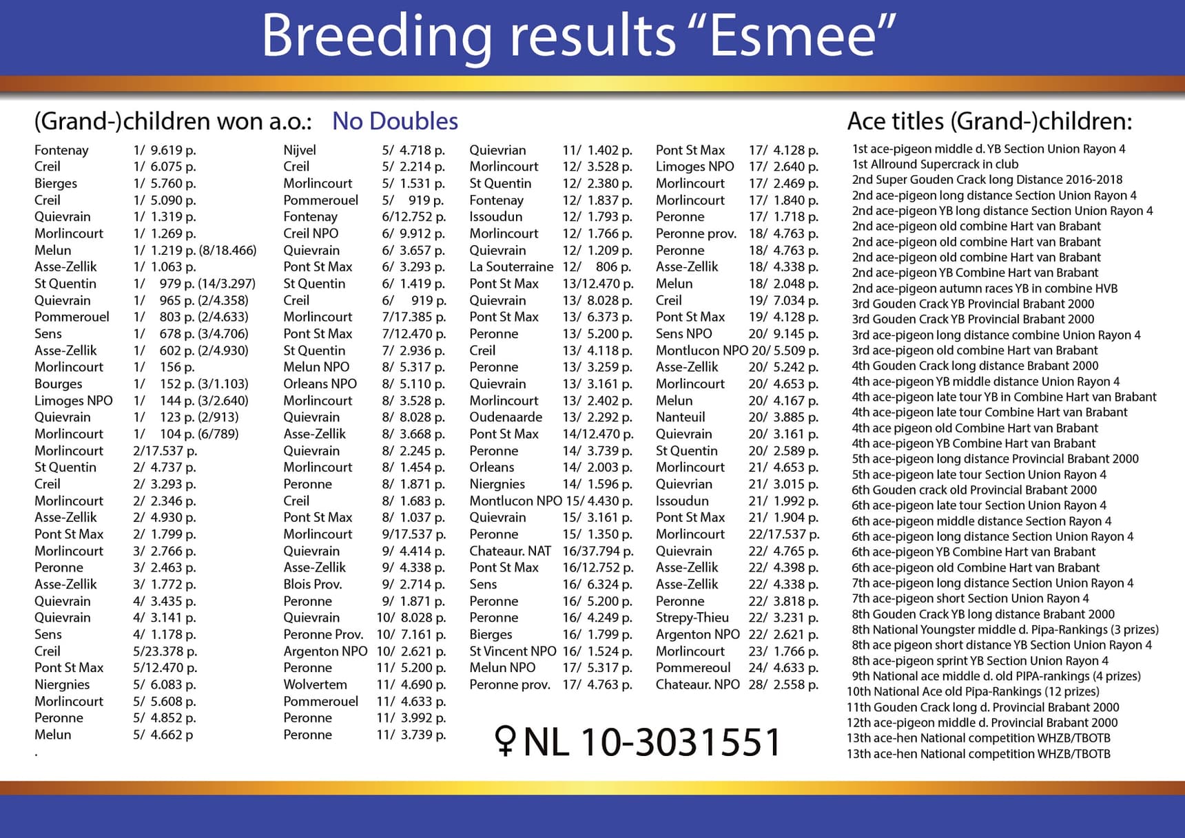 ½ sister to “Romy” 1.National Ace, 1.National yearling Pipa-Rankings