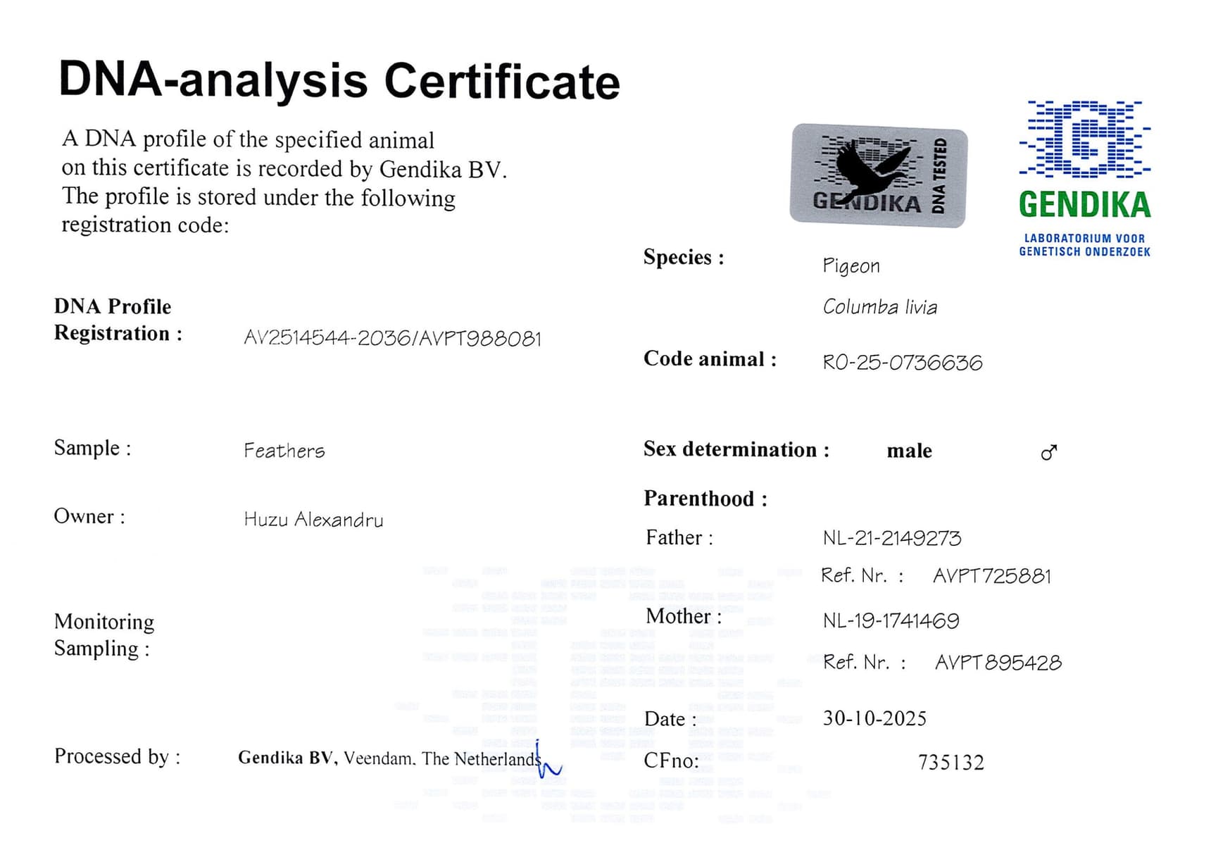 Father: “Son Diamantje” NL21-2149273