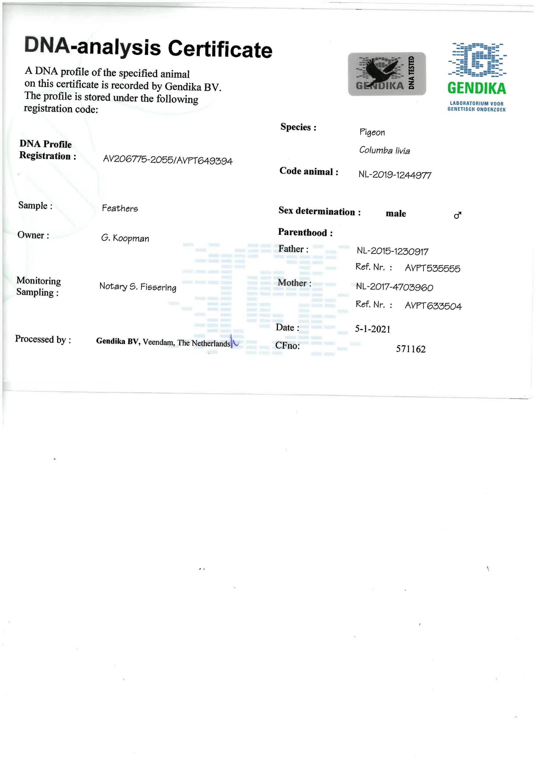 original Peiren Noel) x “Wilma” (full sister 1st Nat.