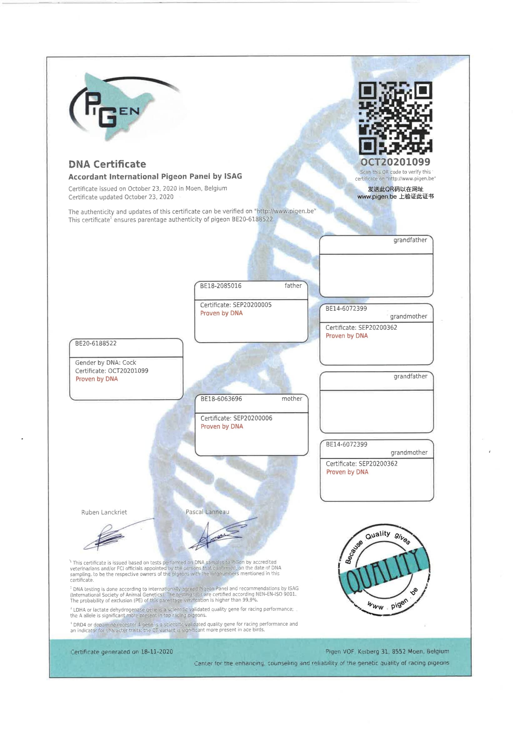 Born out “B14-6072307” (son of “Selleke” x “Marieke”) x “B14-6072399” (daughter “Jan” x “Dina”)