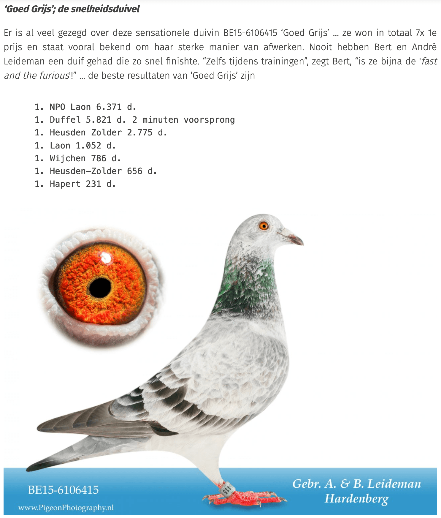 Is nest-mate to world-famous “Goed Grijs” (7 x 1st)