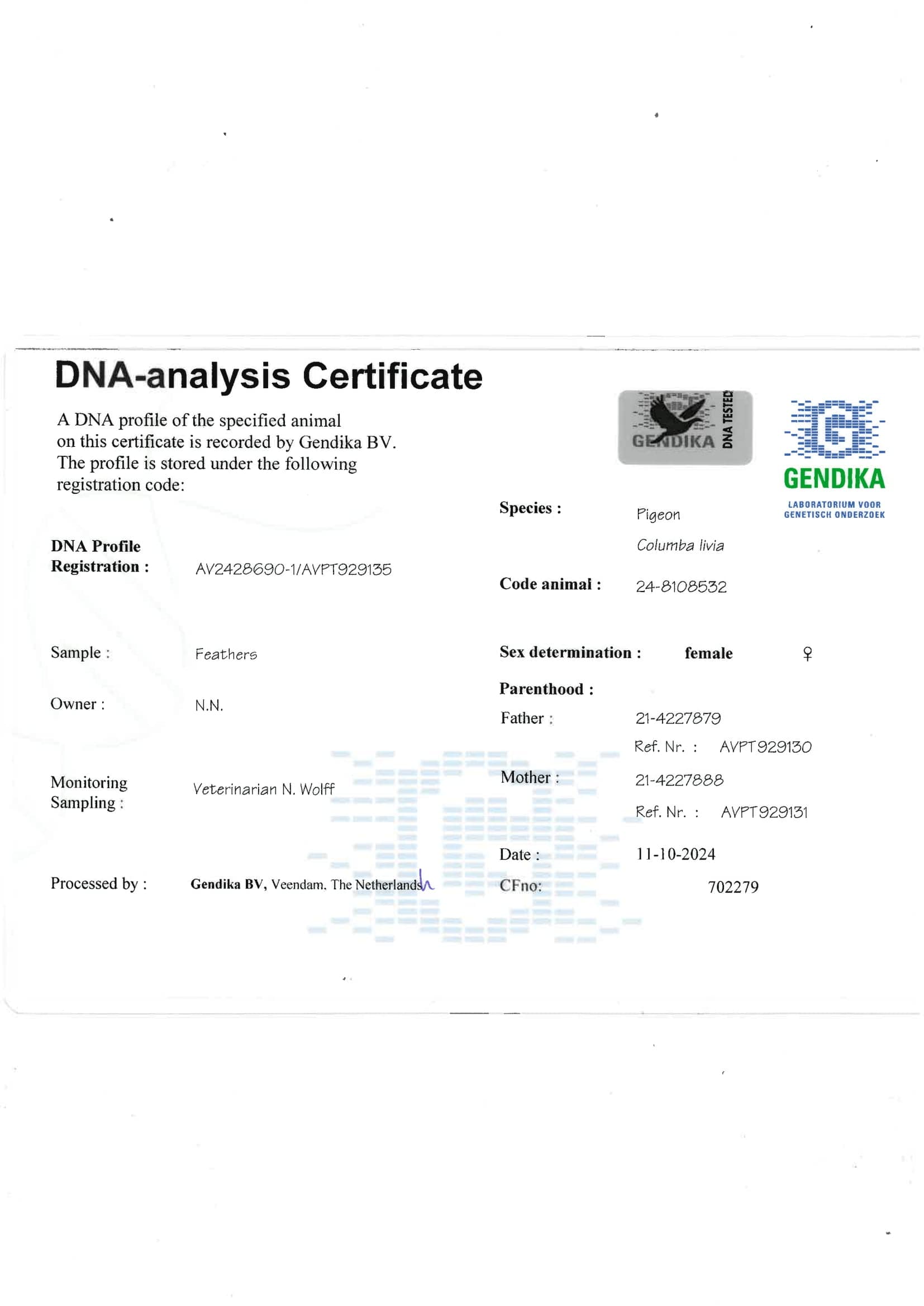 Son of world-famous “Porsche 911” x “New Kim” (1st Nat. ace KBDB youngbirds - sold for 1.6 milj. )