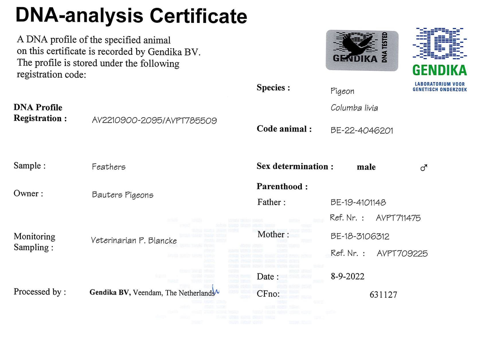 Direct son “Fabian” x “Bolleke”