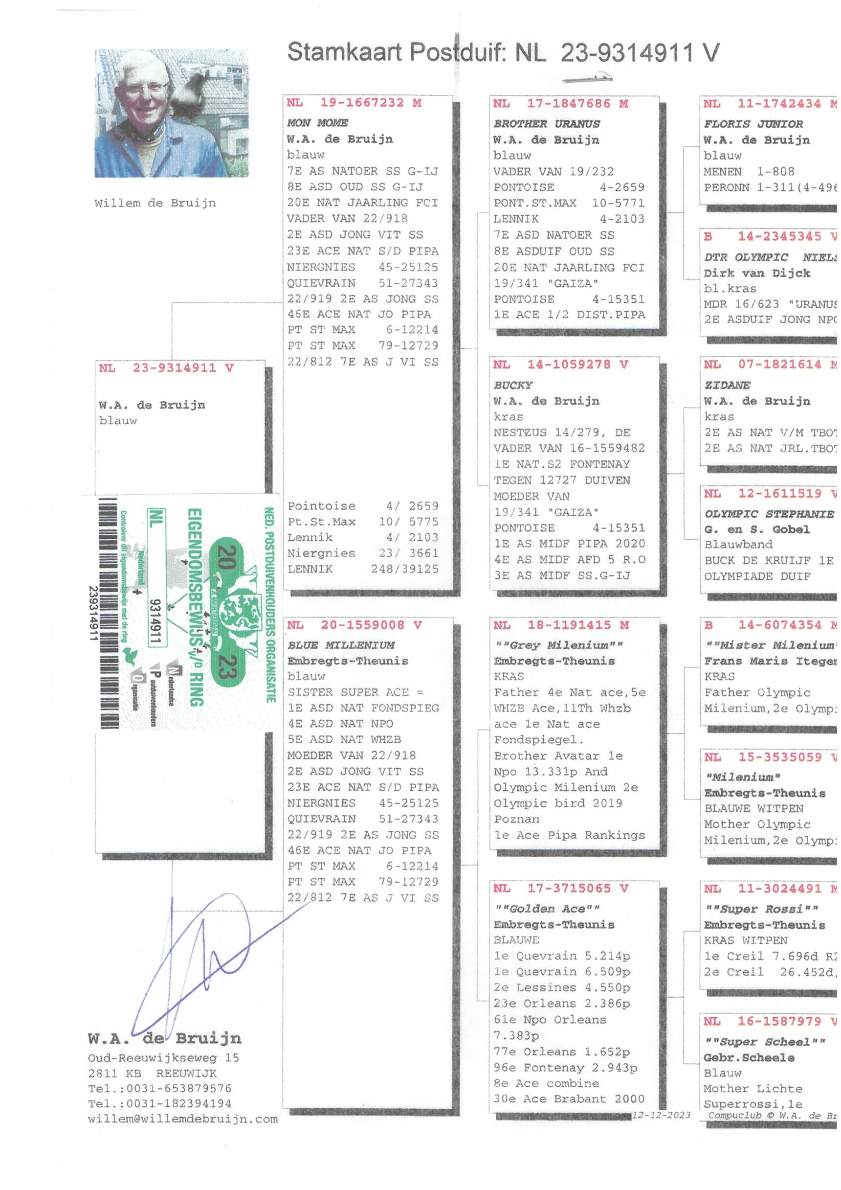 Kweker: 100% WILLEM DE BRUIJN 纯威廉迪布恩血统