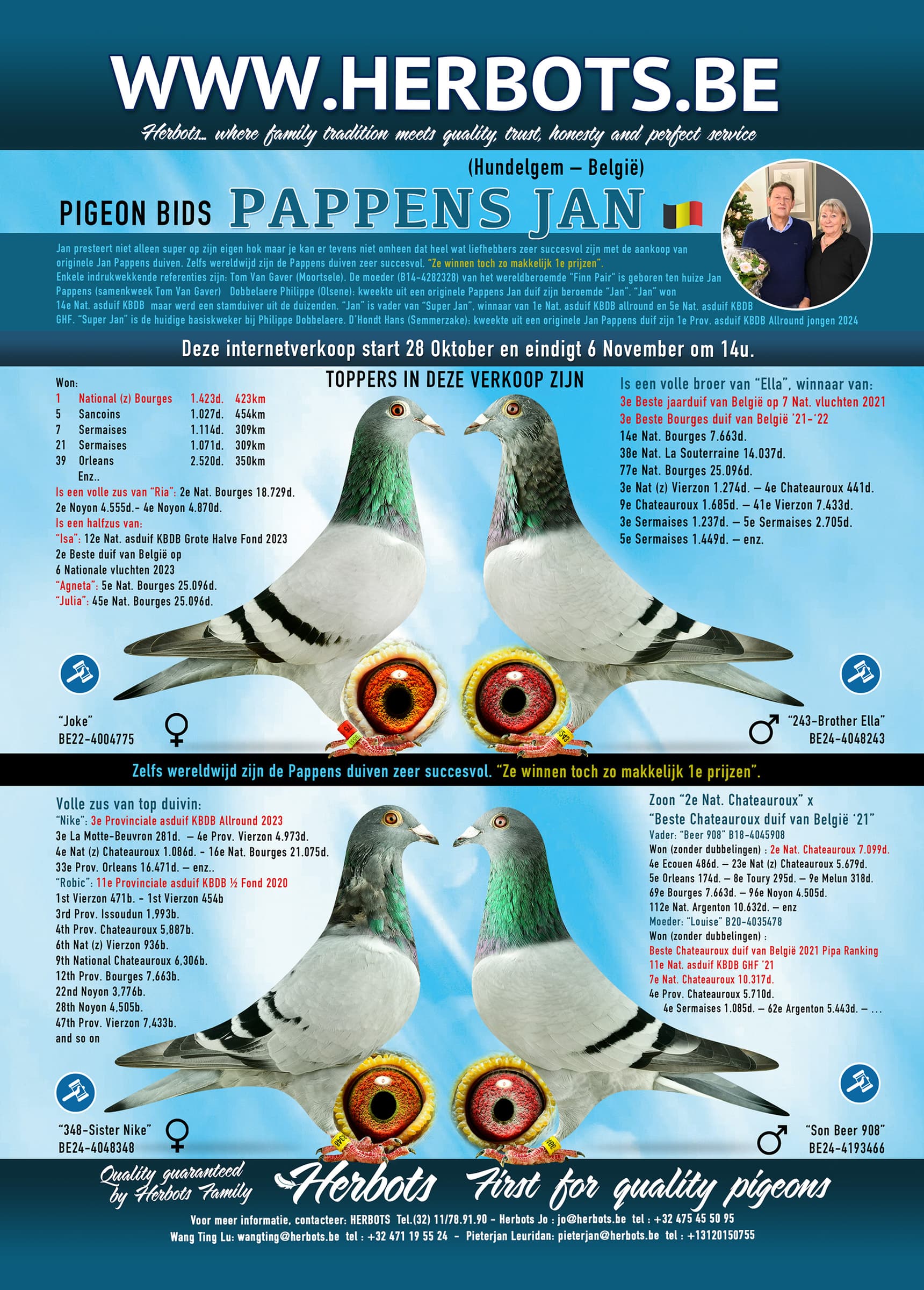 PAPPENS JANSon “2nd Nat. Chateauroux” x “Best Chateauroux bird of Belgium ‘21”