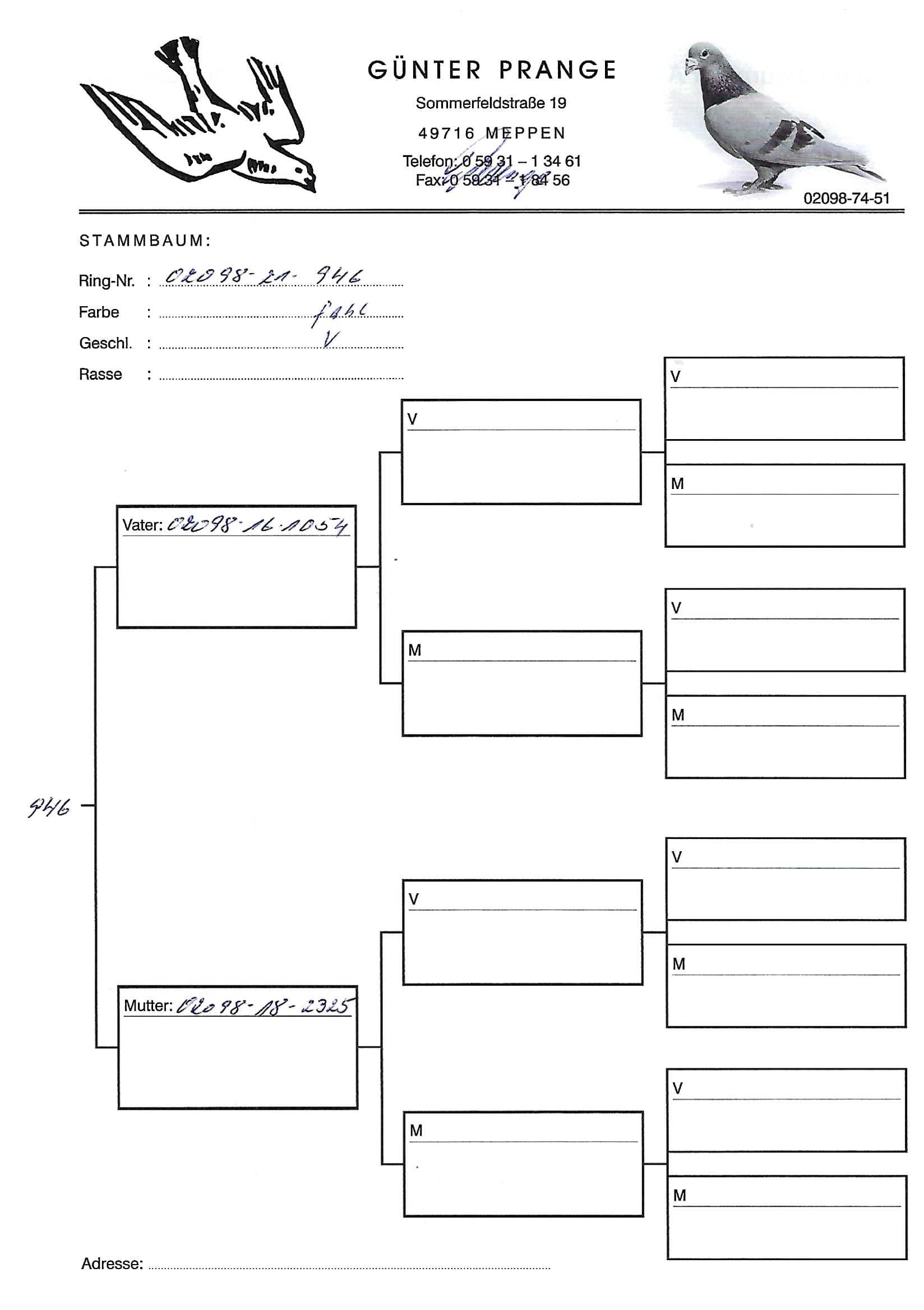 “Der Ringlose” is father and grandfather of 3 different 1st National ace birds in 5 years’ time