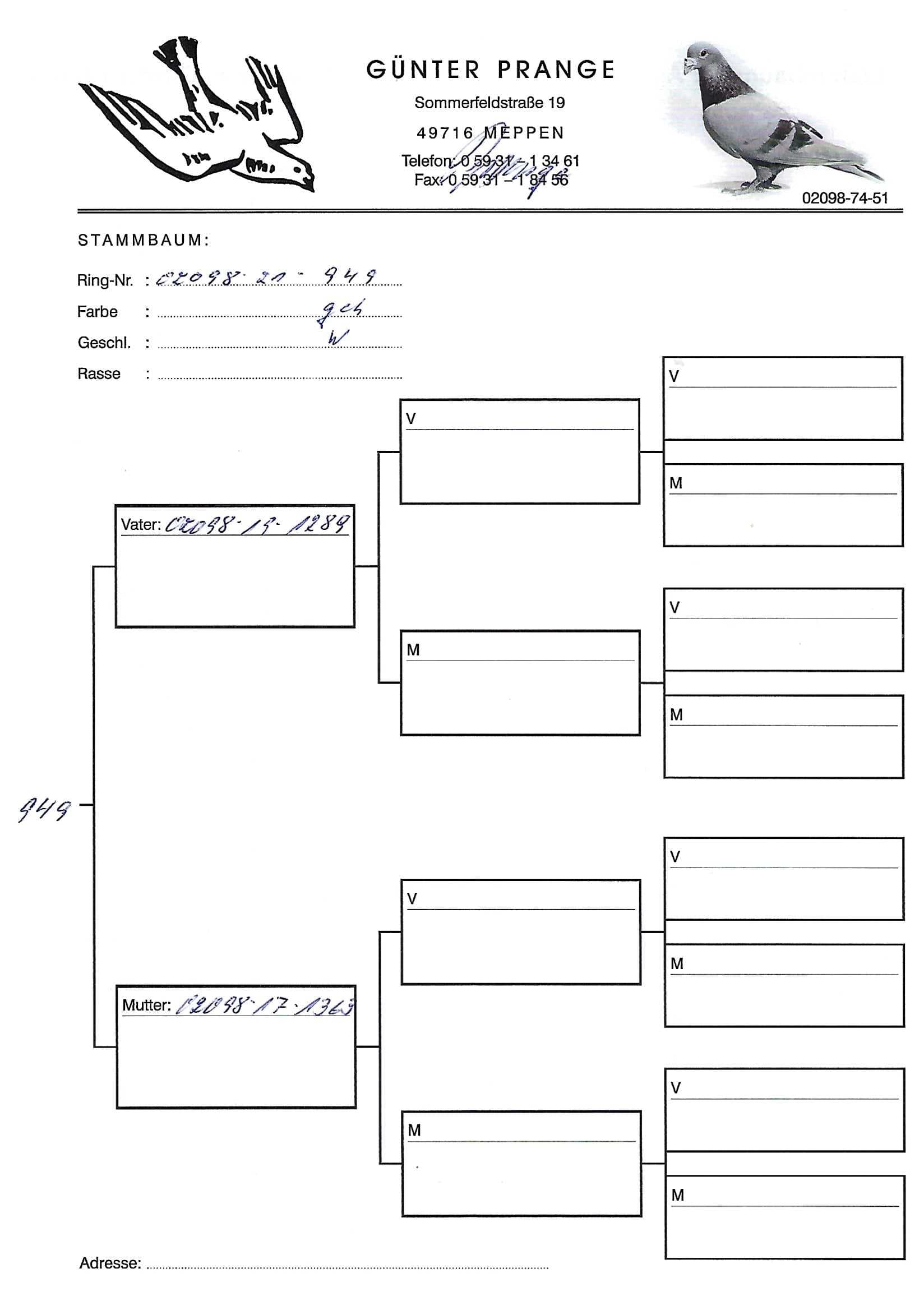 “Der Ringlose” is father and grandfather to 3 different 1st National ace birds in 5 years’ time