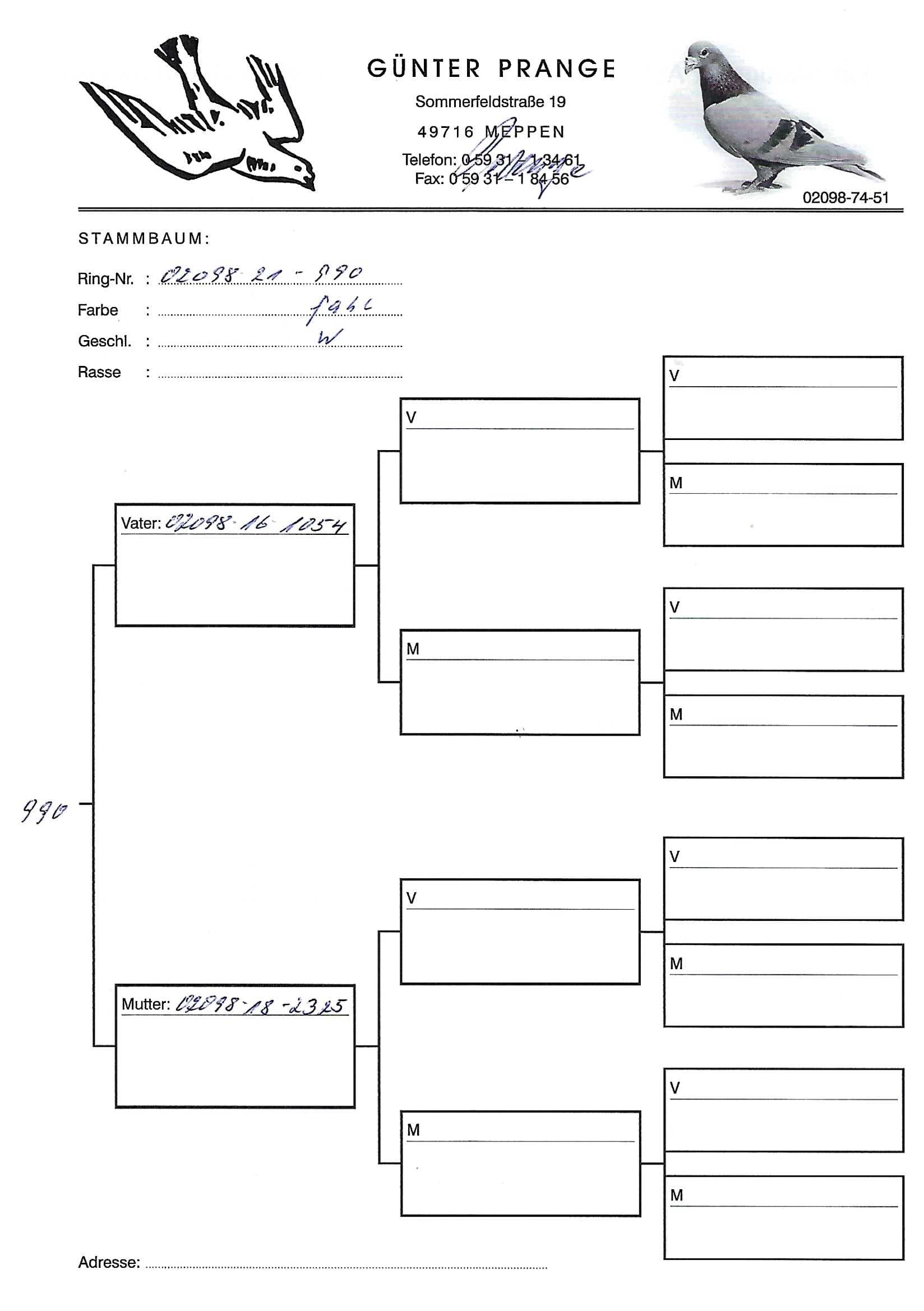 “Der Ringlose” is father and grandfather of 3 different 1st National ace birds in 5 years’ time