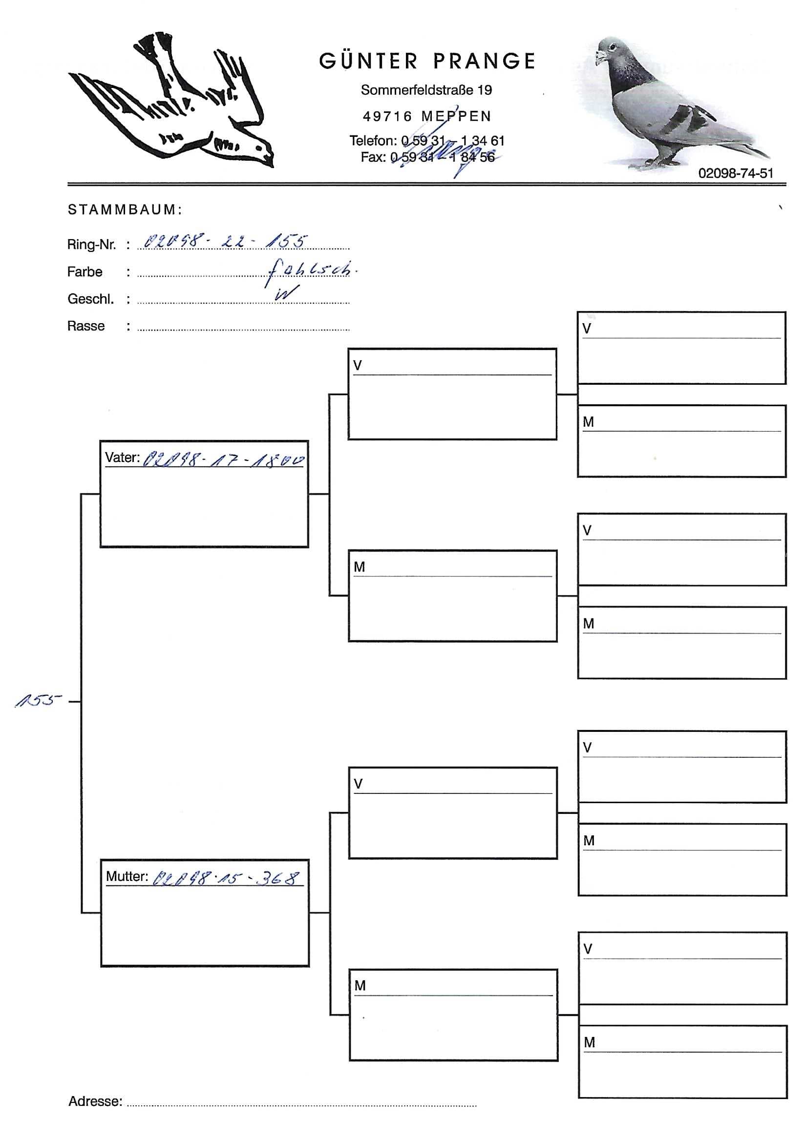 “Der Ringlose”is father and grandfather to 3 different 1st National ace birds in 5 years time