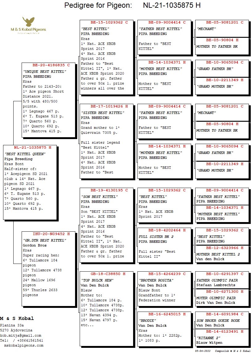 Born out “Son Best Kittel” x “GB-18-C38850” (born out “Brother Olympic Rosita” x “Granddaughter Broer Goede Rode)