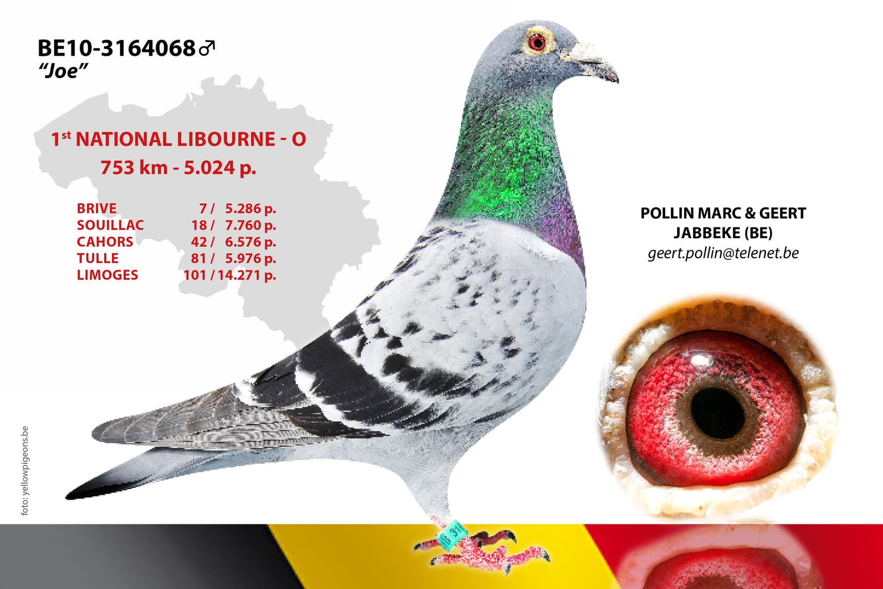 “New Belgian Pride” , 1st National Ace KBDB Marathon 2015 year birds - 1st Nat. Libourne 5,890b. (fastest 10,901b.) - 3rd International Agen 4,485b.