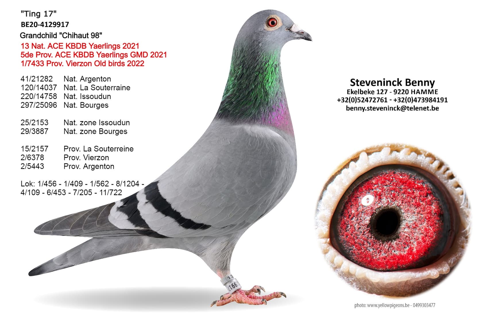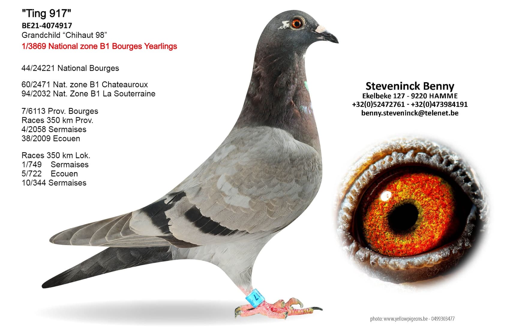 “917-20”: 1st Vierzon Provincial '21 against 7,433b. - 13th Nat. ace KBDB yearbirds – 2nd prov. Vierzon 6,378b., 2nd prov. Argenton 5,443b. (41st Nat. 21,282b.) – 120th Nat. La Souterraine 14,037b., 220nd Nat. Issoudun 14,758b. – 297th Nat. Bourges 25,096b.