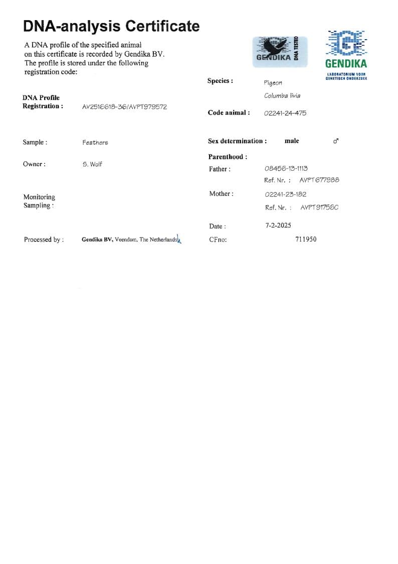 “ZZ Top 26”: acebird (out of 6,877 pigeons) Golden