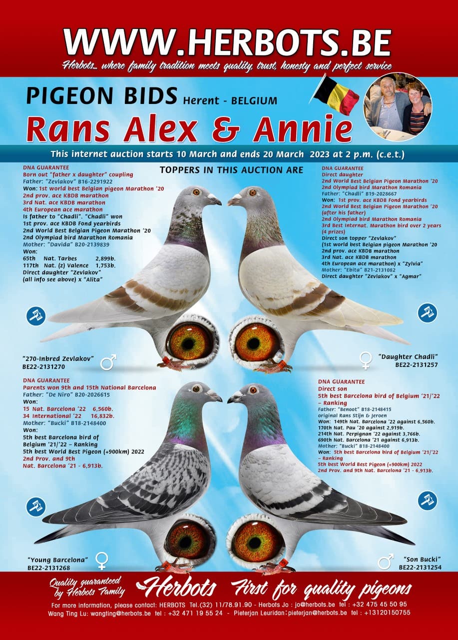 Alex selecteerde exclusief voor internetverkoop Pigeon Bids 8 toppers waarbij