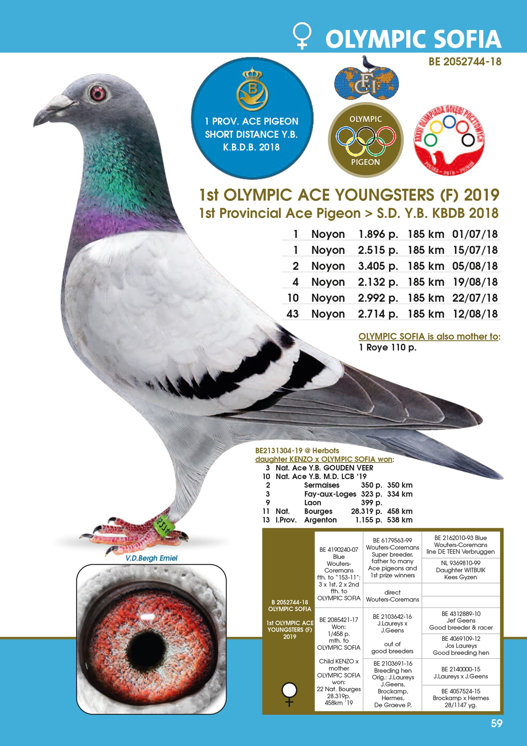 Direct son “Ruby” (1st World Best Pigeon speed ’23) x Olympiad bird “Olympic Sofia”