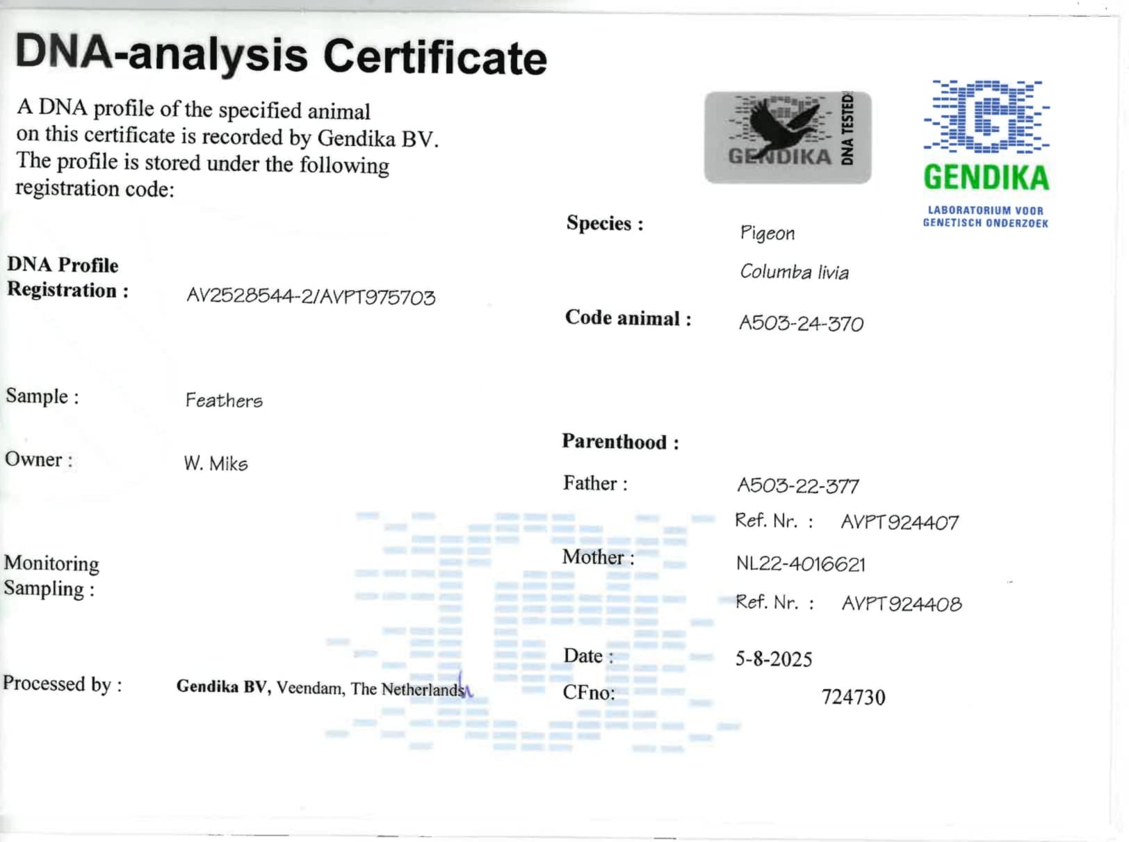 Mother: “Djoeke” NL22-4016621 – original Van Venrooij