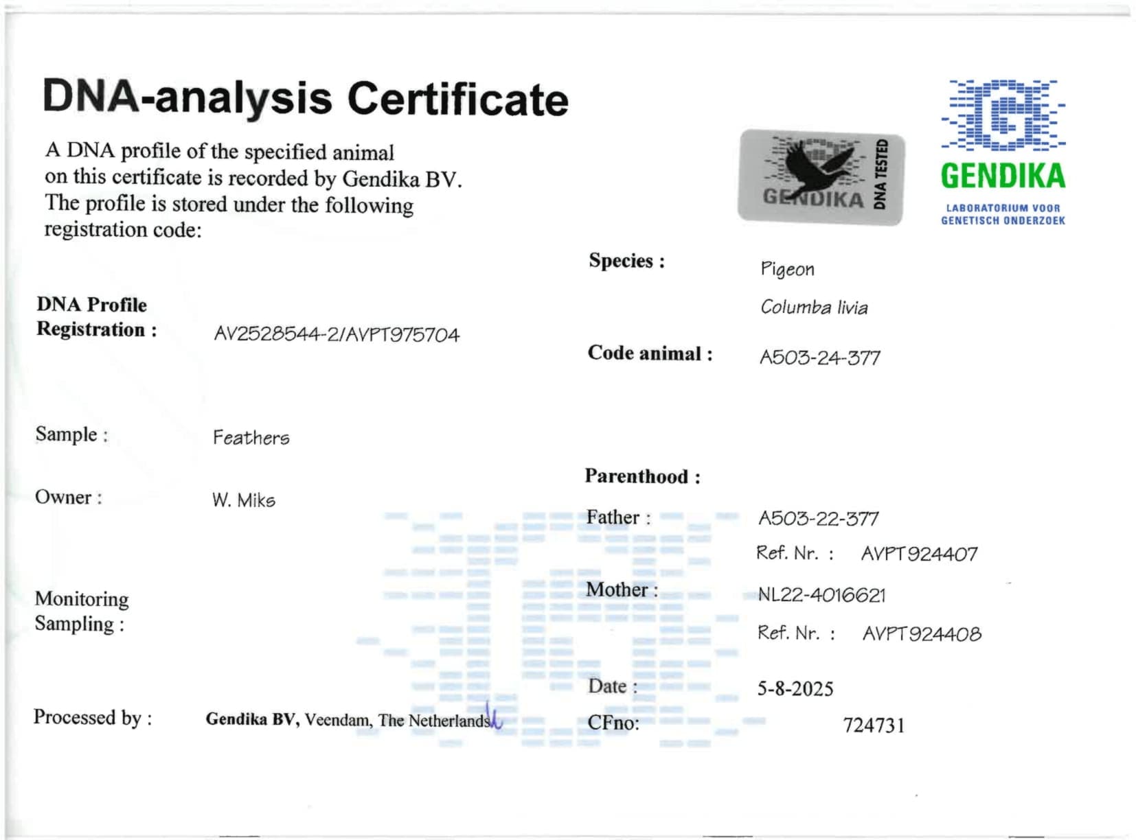 Mother: “Djoeke” NL22-4016621 – original Van Venrooij