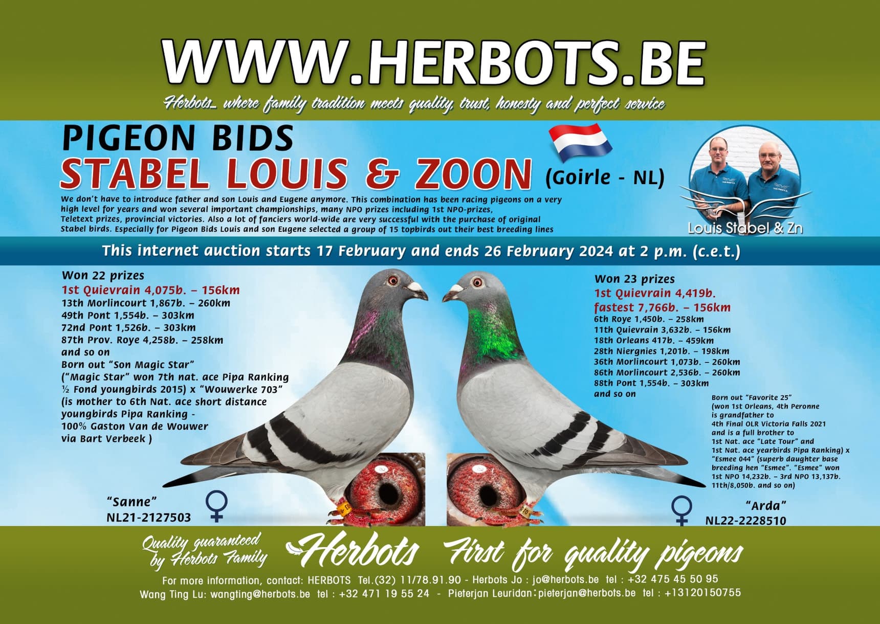 Direct daughter “Wouwer 662” (100% Gaston Van de Wouwer via Bart Verbeek) x “Gertje” (won 67 prizes – Strain: Koopman x Van de Boogaard)
