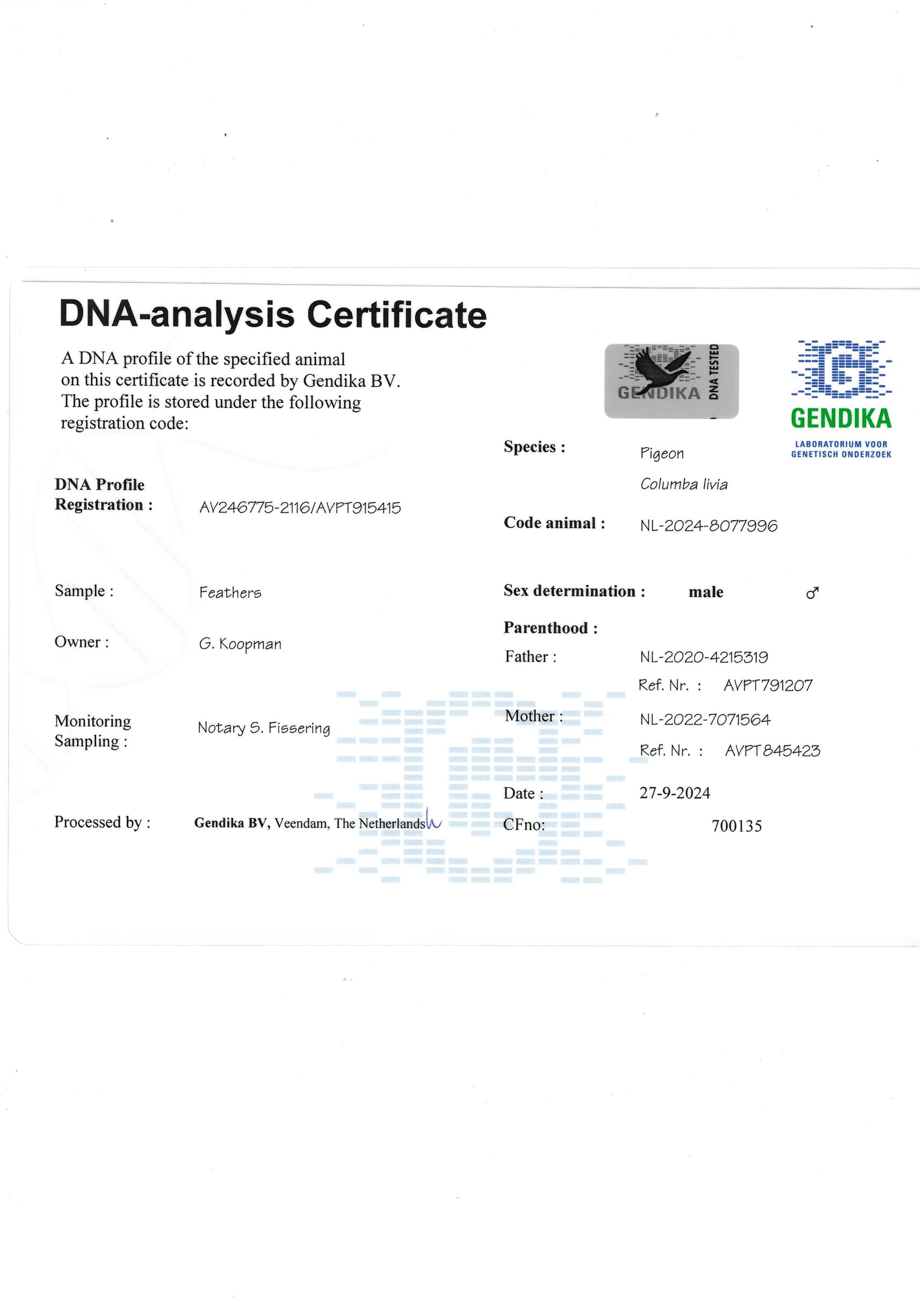 Strain: TJ & TJ Elzinga x Hooymans (breeding line “Harry”)