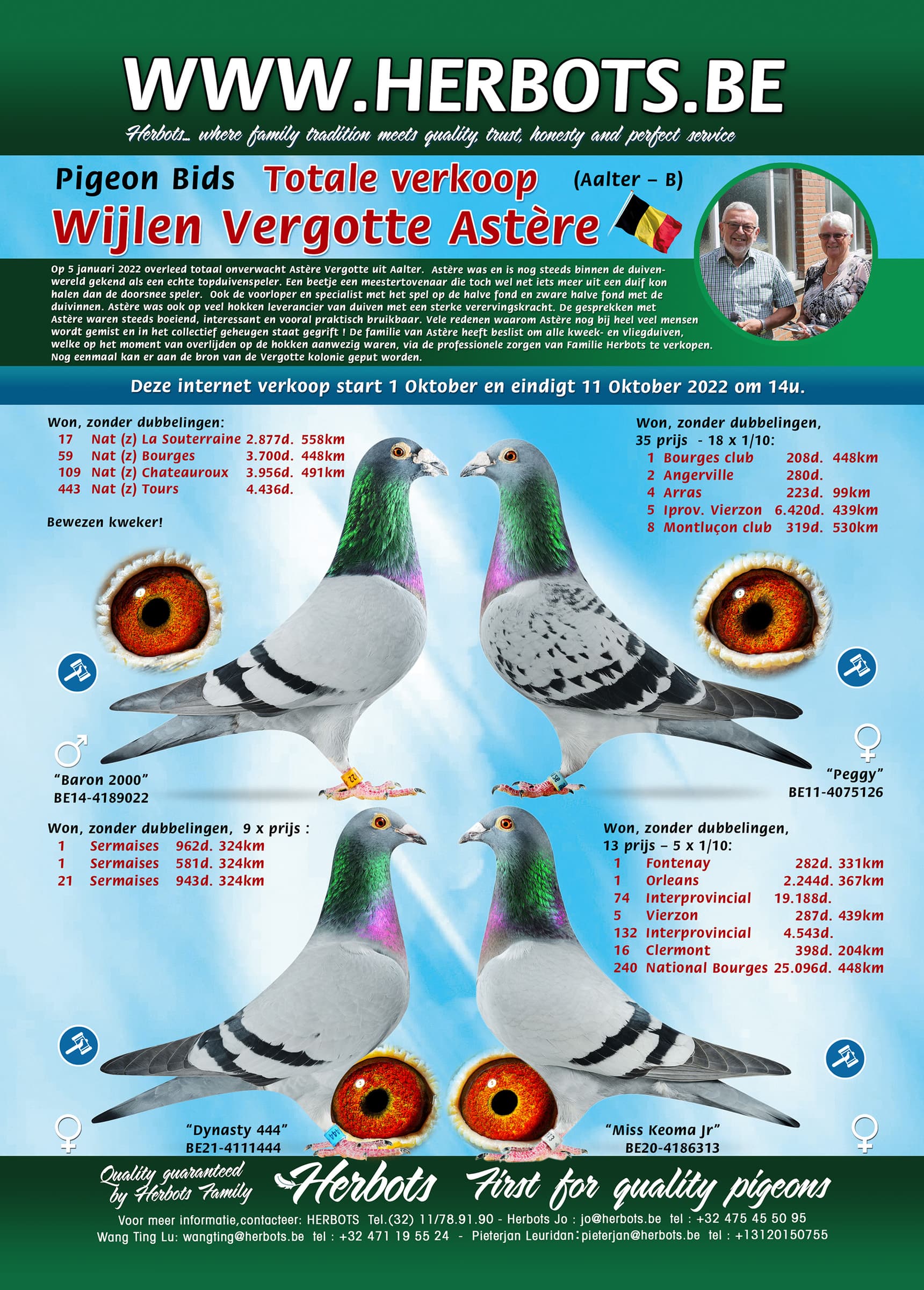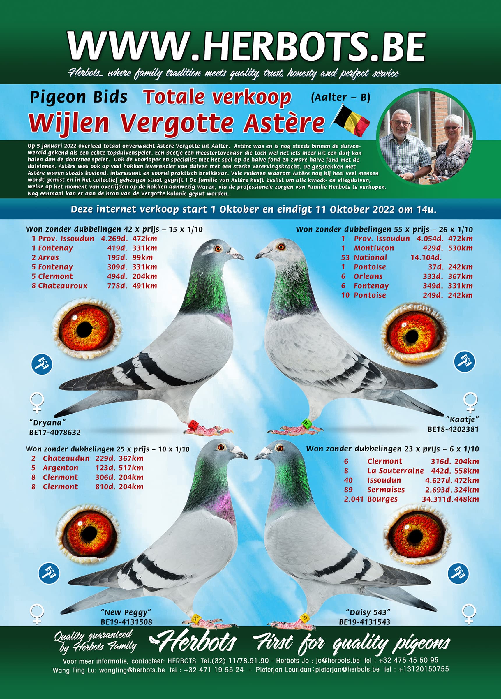 pigeon bids - totale verkoop - wijlen vergotte astère - part iv