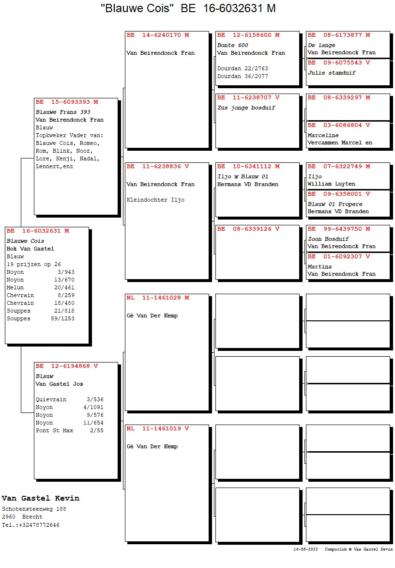 Won: 2nd Pont 55b. - 3rd Quievrain 536b. – 4th Noyon 1,091b. - 9th Noyon 576b. – 11th Noyon 654b.