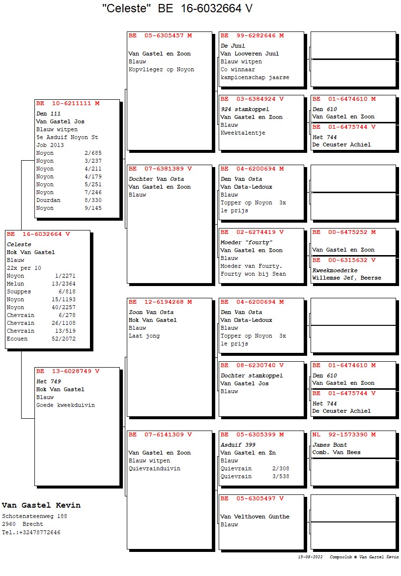 Granddaughter “Den Van Osta” (won 3 x 1st on Noyon)