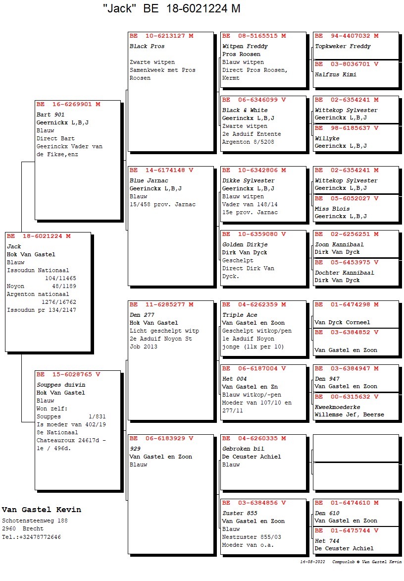 Born out “Black Pros” (grandson “Freddy” and “Wittekop Sylvester” x “Willyke”) x “Blue Jarnac” (grandson “Wittekop Sylvester” x “Miss Blois”)