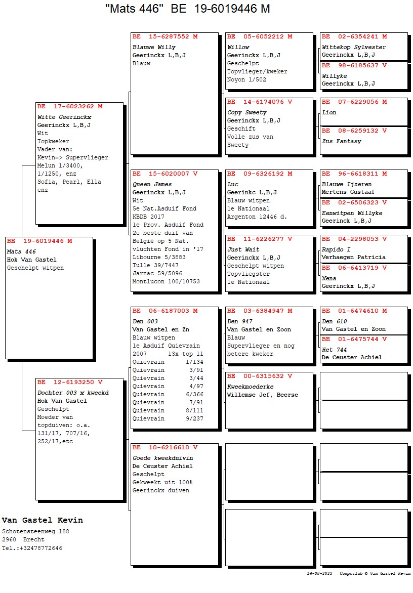 Born out “Blauwe Willy” (grandson “Wittekop Sylvester” x “Willyke”) x “Queen James”
