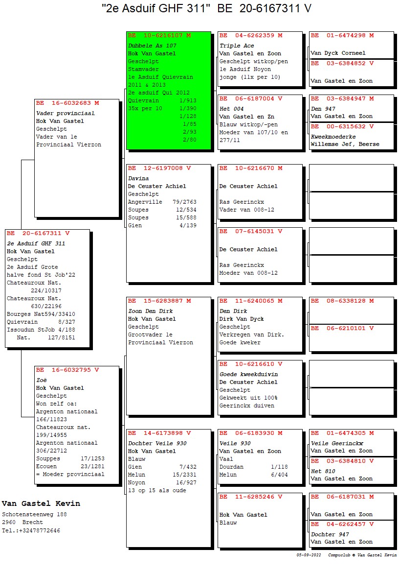 Won: 17th Souppes 1,253b. - 20th Bourges 468b. - 23rd Ecouen 1,281b. - 166th Nat. Argenton 11,823b. - 199th Nat. Chateauroux 14,955b. - 306th Nat. Argenton 22,712b.