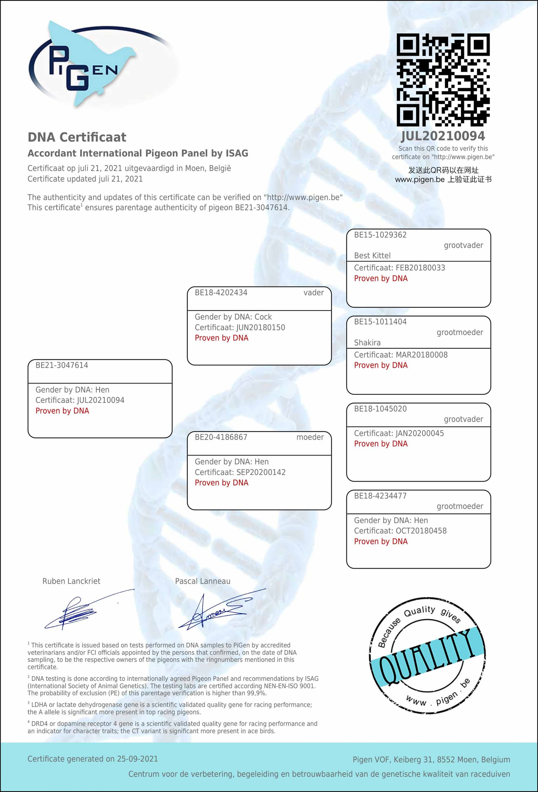 Direct daughter “Daniel” x “Daughter Best Kittel”