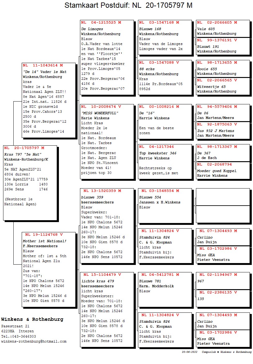 Won 1st Prov. Limoges 1,279b. and is father to “Lotte” (1st Nat. Bordeaux ’14) and “Floortje” (1st Nat. Tarbes ’15)